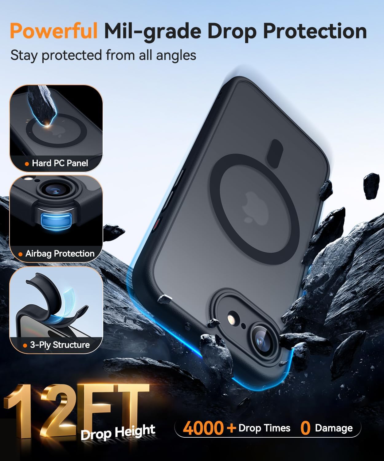 CANSHN Кейс за iPhone 16e със защита на камерата за Magsafe (най-висока военна защита и магнитна сила) Изключително издръжлив кейс за iPhone 16e, удароустойчив, черен