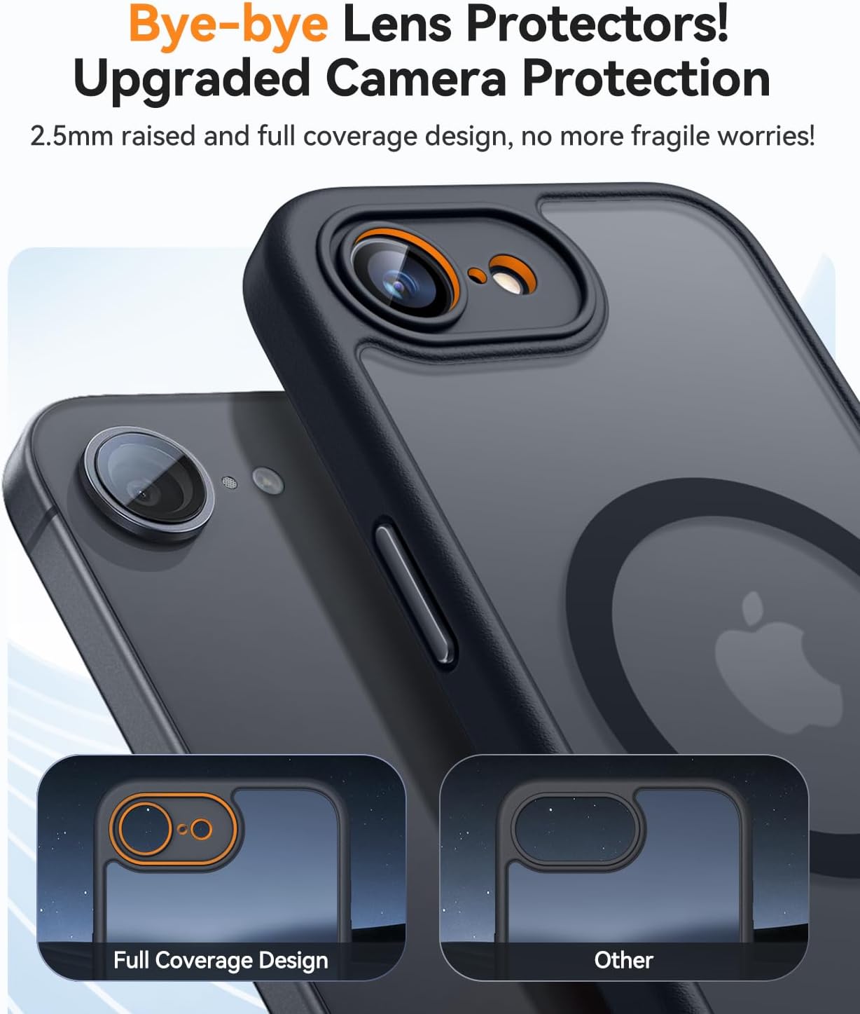 • Подобрена пълна защита на камерата: Кажете сбогом на конвенционалните протектори за обективи! В сравнение с други обикновени калъфи за телефони, нашият калъф за iPhone 15 предлага подобрена цялостна защита за камерата, с 2,5 мм висок ръб около обектива. Той осигурява цялостна защита за обектива, без да прави компромис с фотографията.