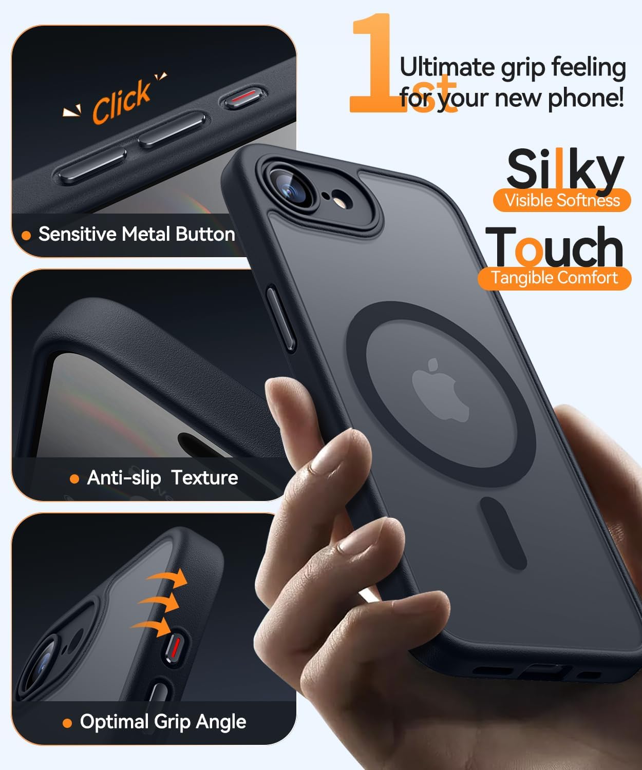 • Матова текстура и копринено усещане: Матовият прозрачен калъф за телефон за iPhone 15 съчетава безпроблемно издръжливост и стил. Той е с гъвкава термопластична полиуретанова (TPU) рамка и твърд поликарбонатен (PC) гръб с матово покритие, което придава копринено усещане на допир и е неплъзгащо, без пръстови отпечатъци и лесно за почистване. Минималистичен дизайн, предлага разнообразие от цветове, които да отговарят на вашия личен стил.