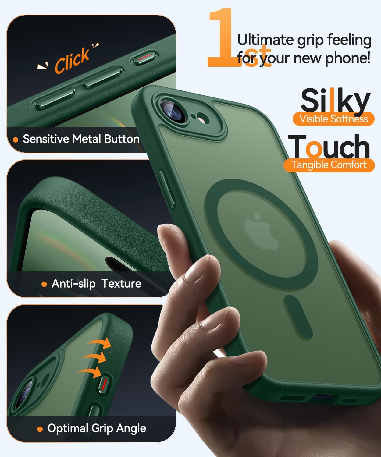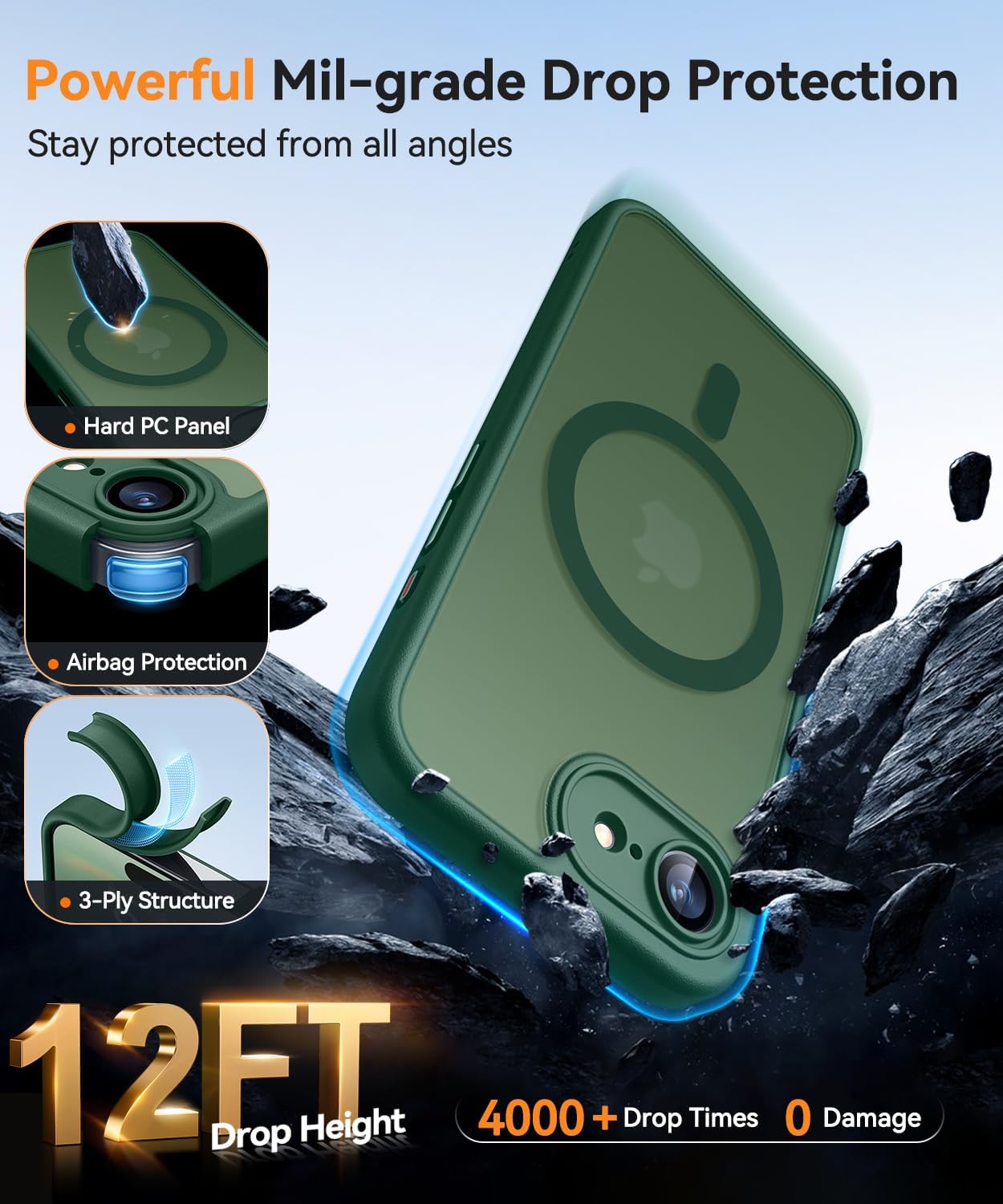 CANSHN Кейс за iPhone 16e със защита на камерата за Magsafe (най-висока военна защита и магнитна сила) Изключително издръжлив кейс за iPhone 16e, удароустойчив, тъмнозелен