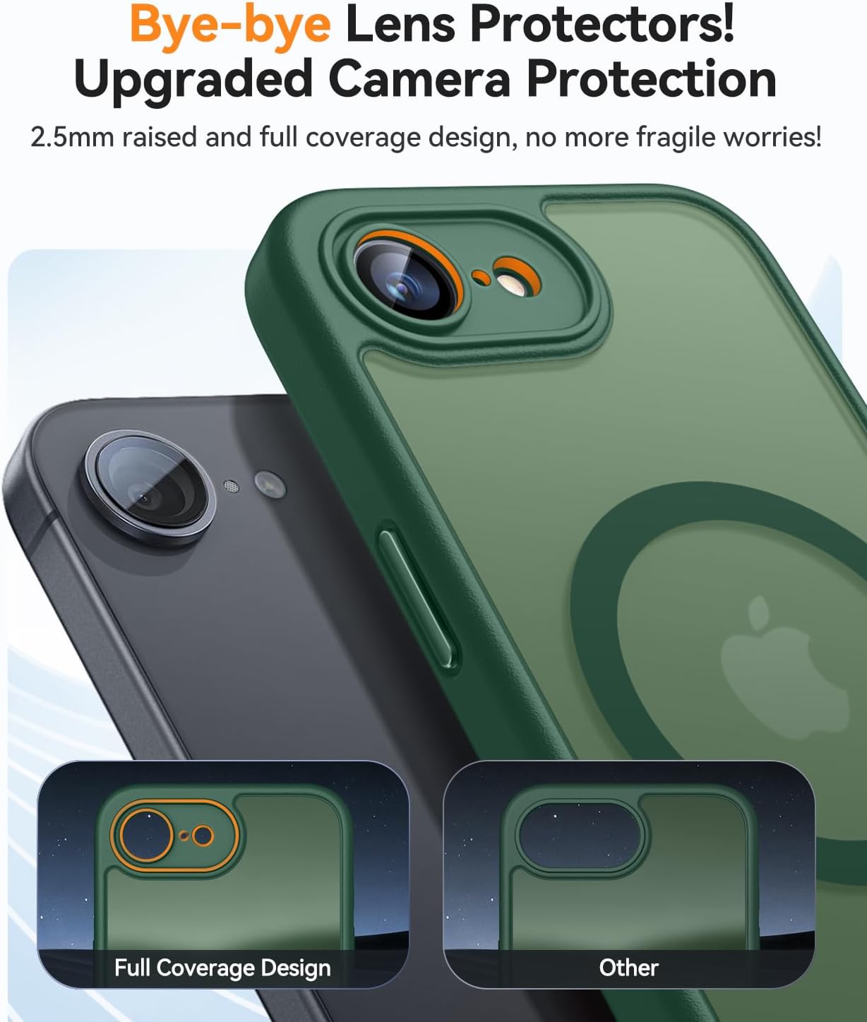 • Подобрена пълна защита на камерата: Кажете сбогом на конвенционалните протектори за обективи! В сравнение с други обикновени калъфи за телефони, нашият калъф за iPhone 15 предлага подобрена цялостна защита за камерата, с 2,5 мм висок ръб около обектива. Той осигурява цялостна защита за обектива, без да прави компромис с фотографията.