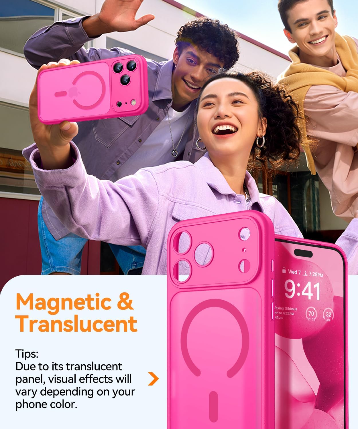 CANSHN Кейс за iPhone 17 Pro Max със защита на камерата за Magsafe (най-висока военна защита и магнитна сила) Изключително издръжлив кейс за iPhone 17 Pro Max Удароустойчив Кейс Ярко розов