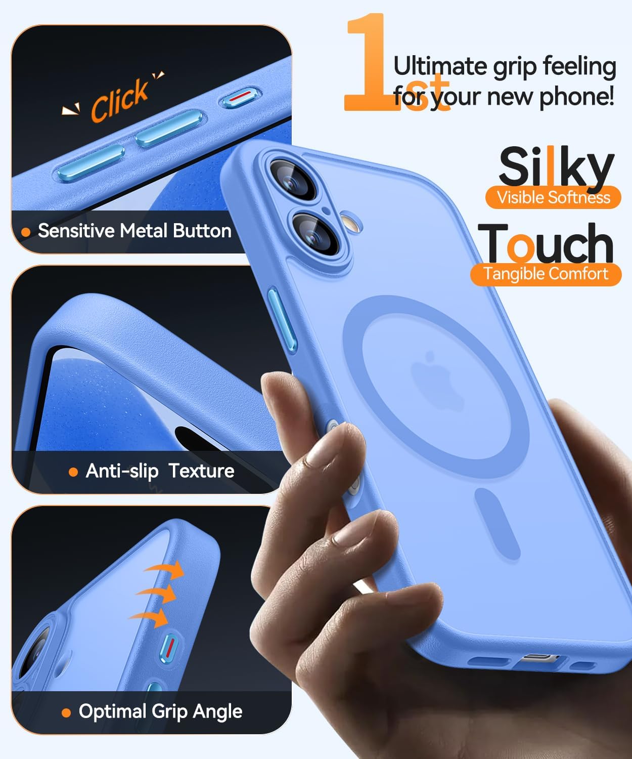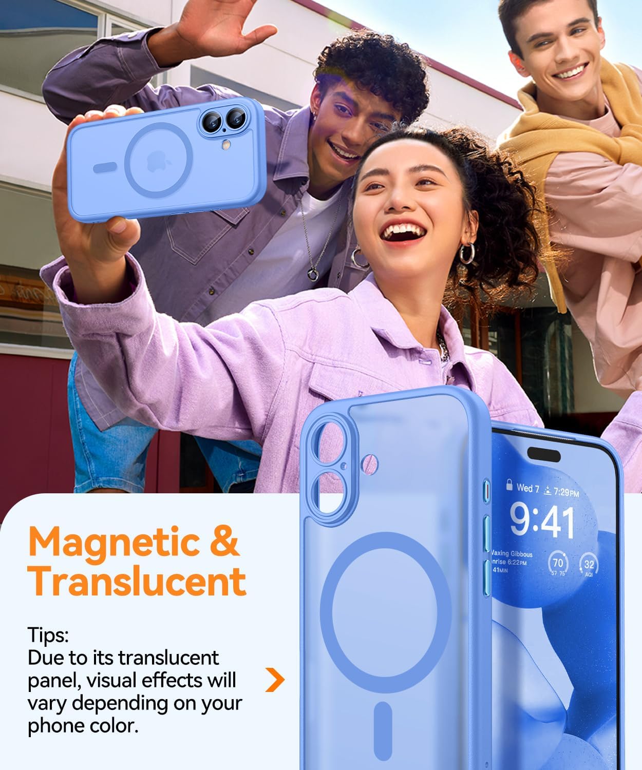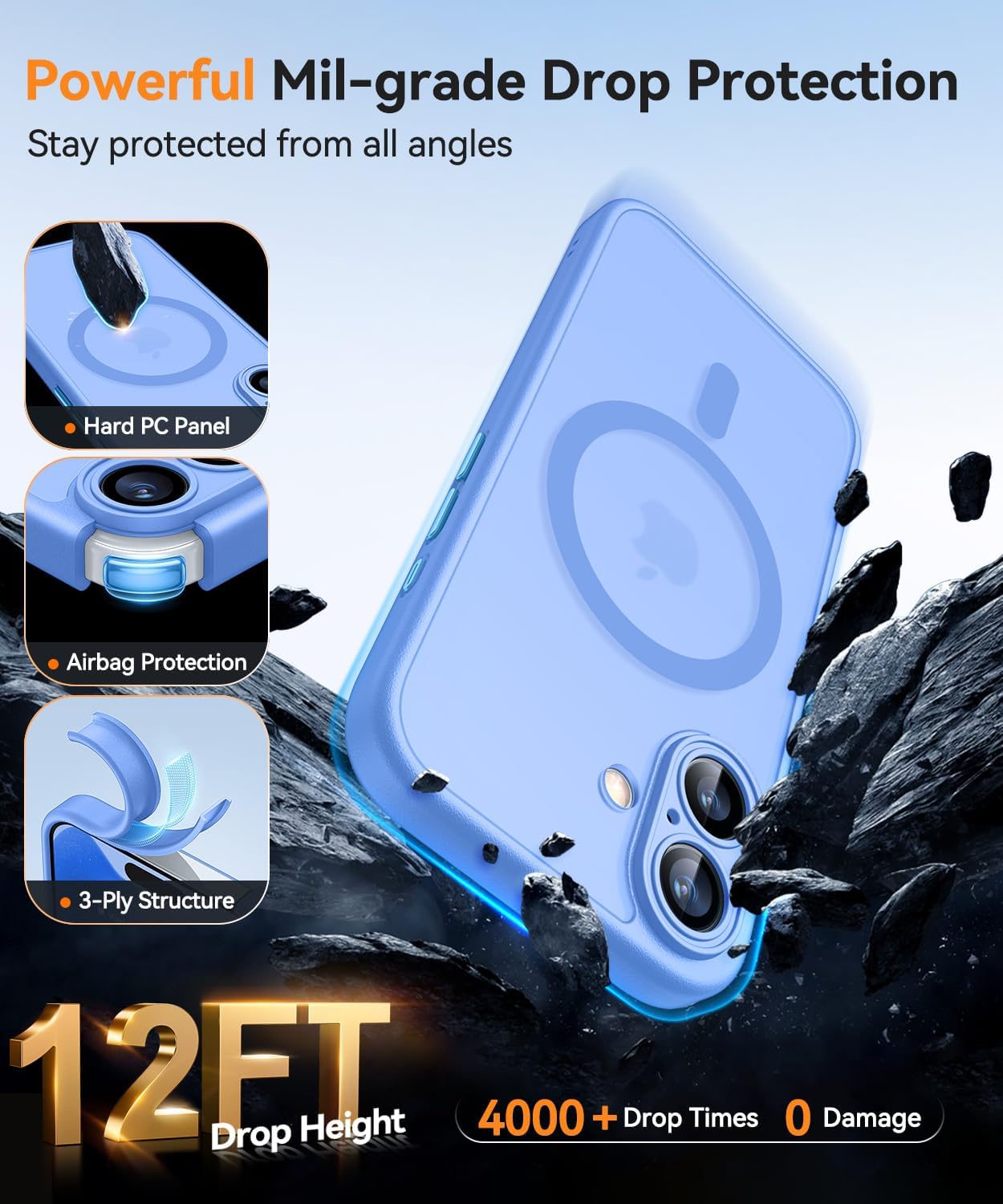 CANSHN Кейс за iPhone 17 със защита на камерата за Magsafe (най-висока военна защита и магнитна сила) Изключително издръжлив кейс за iPhone 17, удароустойчив, небесно син