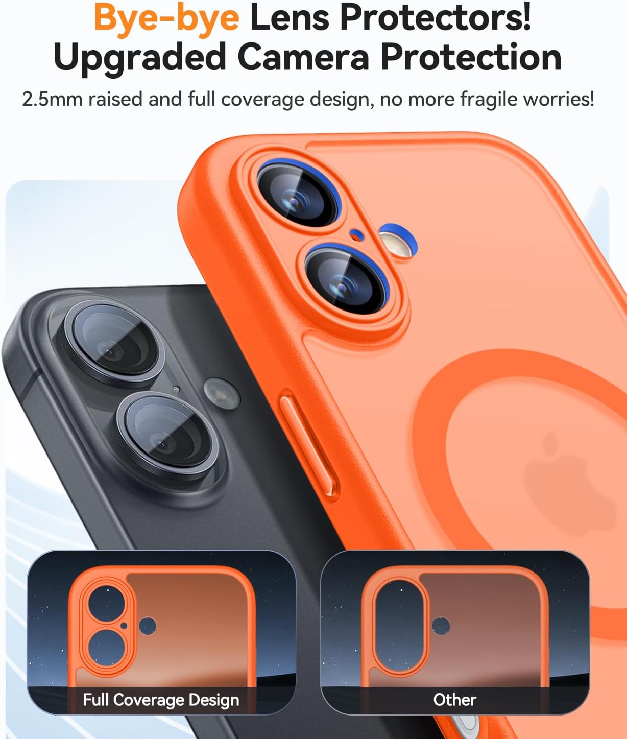 • Подобрена пълна защита на камерата: Кажете сбогом на конвенционалните протектори за обективи! В сравнение с други обикновени калъфи за телефони, нашият калъф за iPhone 15 предлага подобрена цялостна защита за камерата, с 2,5 мм висок ръб около обектива. Той осигурява цялостна защита за обектива, без да прави компромис с фотографията.