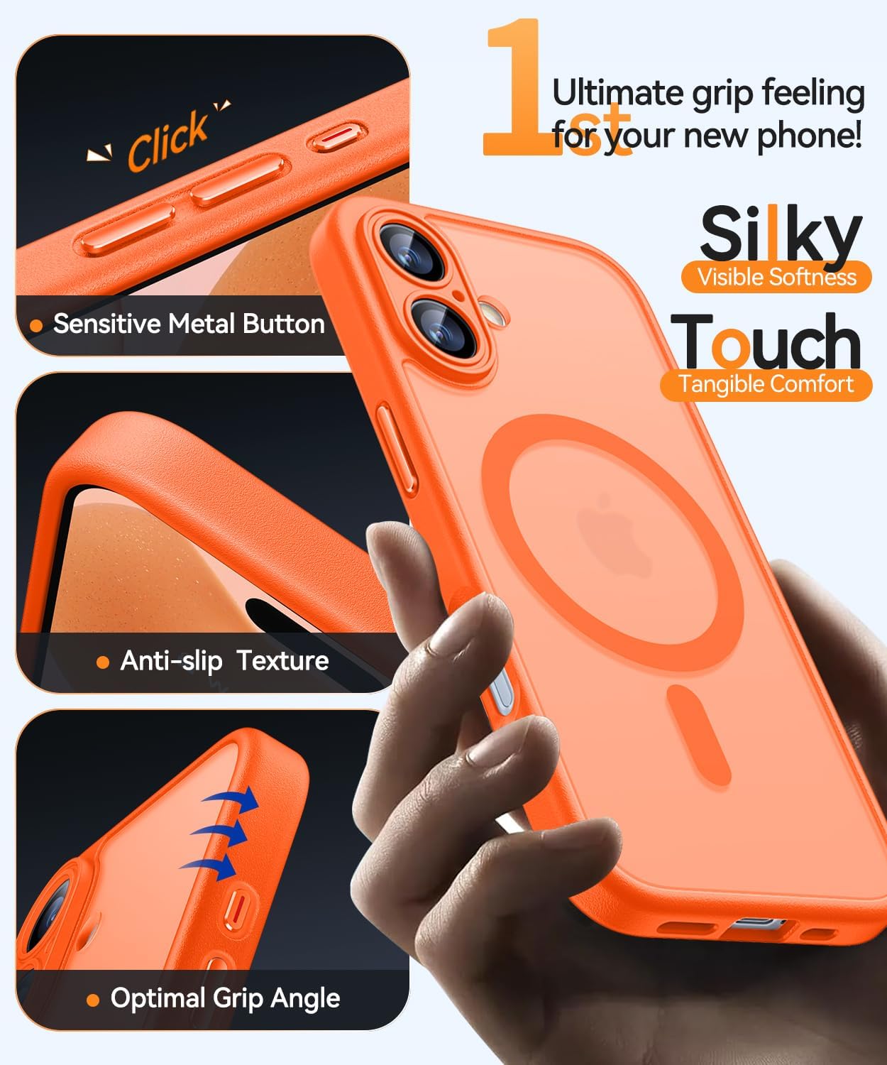 CANSHN Кейс за iPhone 17 със защита на камерата за Magsafe (най-висока военна защита и магнитна сила) Изключително издръжлив кейс за iPhone 17, удароустойчив, оранжев