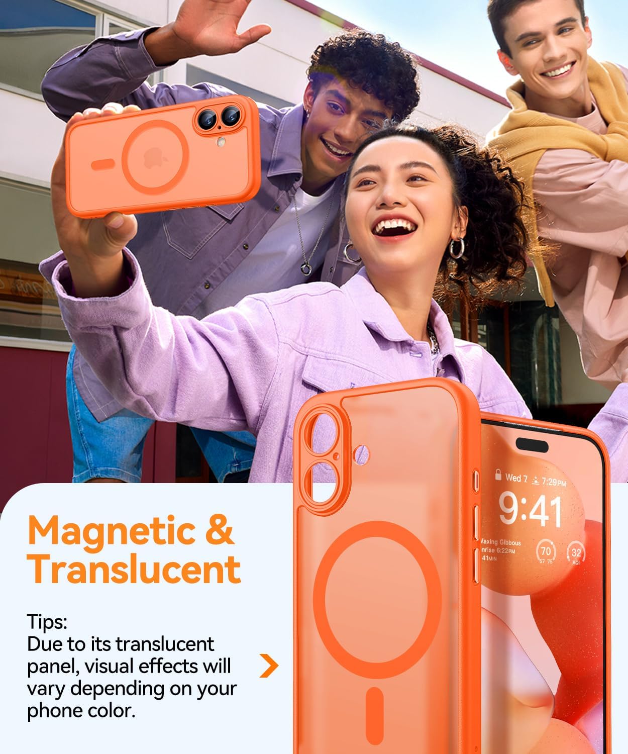 • Силно магнитно привличане: С вградени мощни N52 магнити, този калъф за iPhone 15 е напълно съвместим със зарядни устройства MagSafe и други безжични Qi зарядни устройства. Той се свързва здраво и с други магнитни аксесоари, като магнитни портфейли, външни батерии и стойки за кола, осигурявайки сигурна и стабилна връзка, дори при завъртане или преместване.