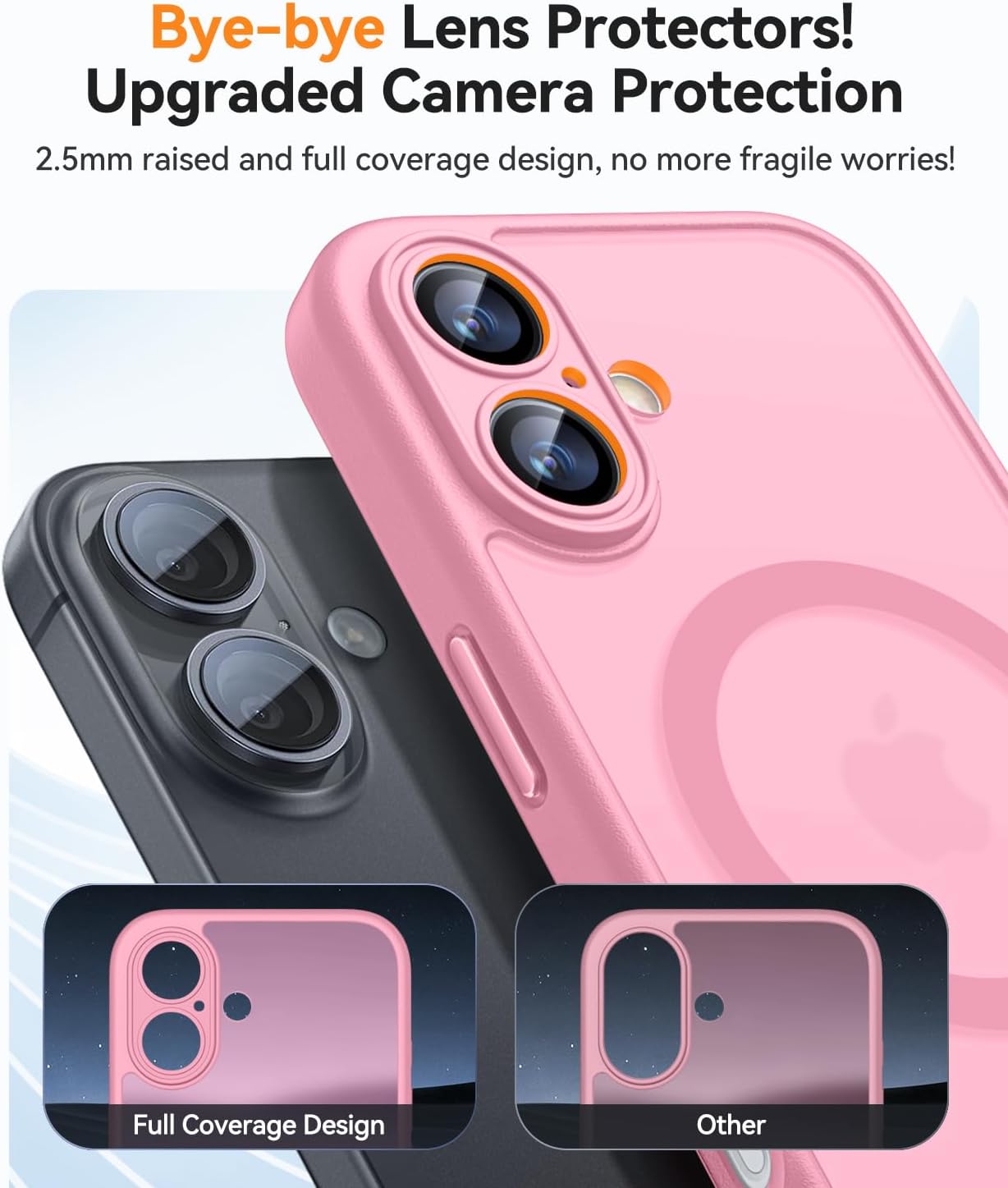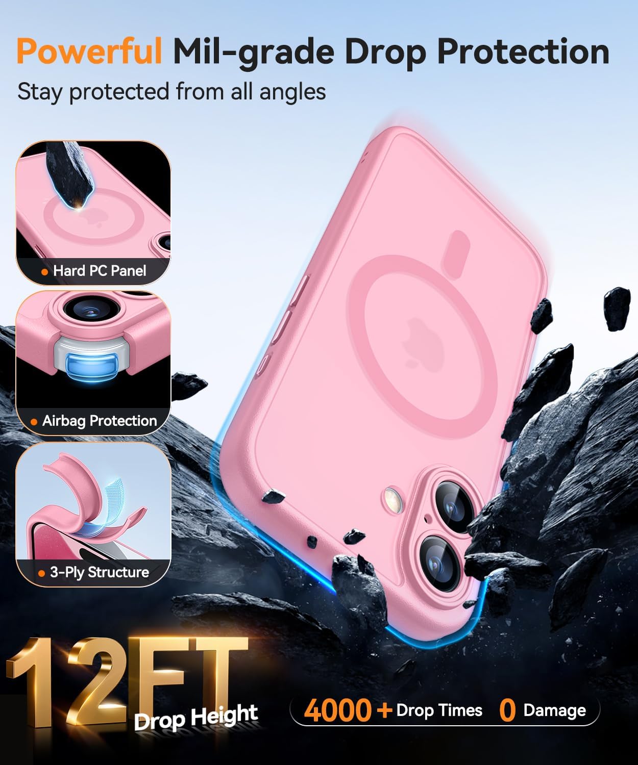 CANSHN Кейс за iPhone 17 със защита на камерата за Magsafe (най-висока военна защита и магнитна сила) Изключително издръжлив кейс за iPhone 17, удароустойчив, розов