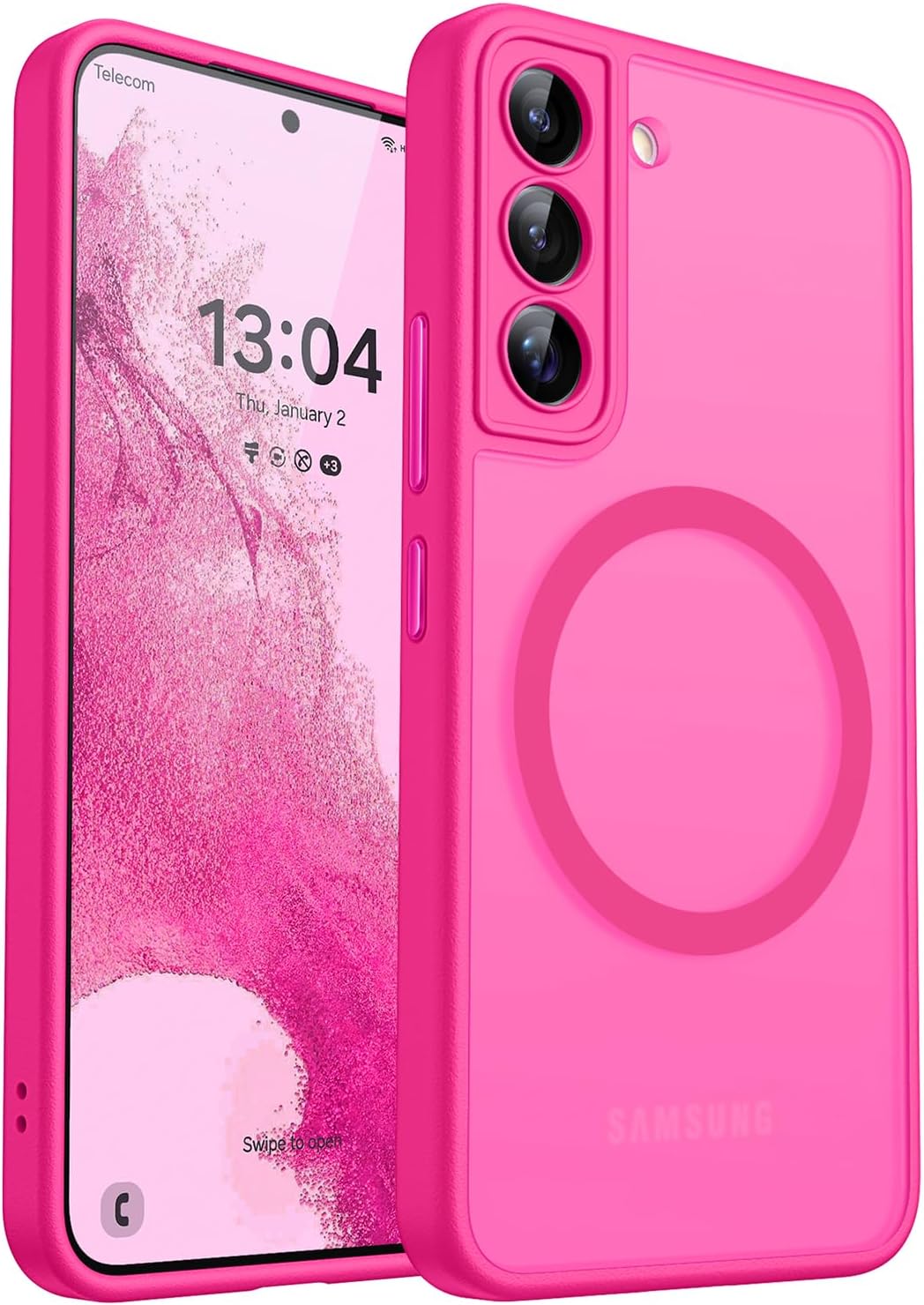 CANSHN Кейс за Samsung Galaxy S22 със защита на камерата за Magsafe (най-висока военна защита и магнитна сила) Изключително издръжлив кейс за мобилен телефон S22 - прозрачен матов, светло розов