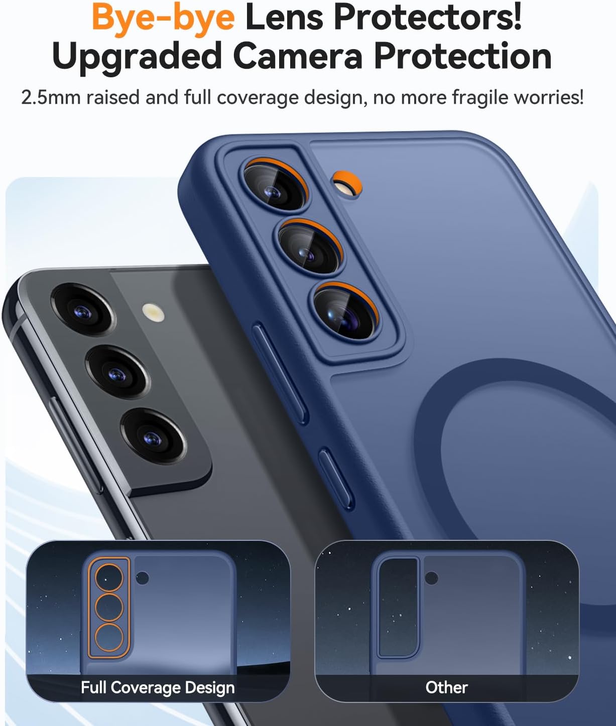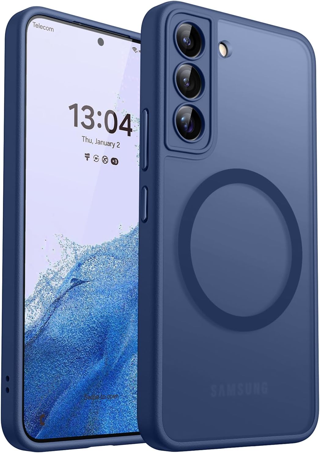 CANSHN Кейс за Samsung Galaxy S22 със защита на камерата за Magsafe (най-висока военна защита и магнитна сила) Изключително издръжлив кейс за мобилен телефон S22 - прозрачен матов тъмносин