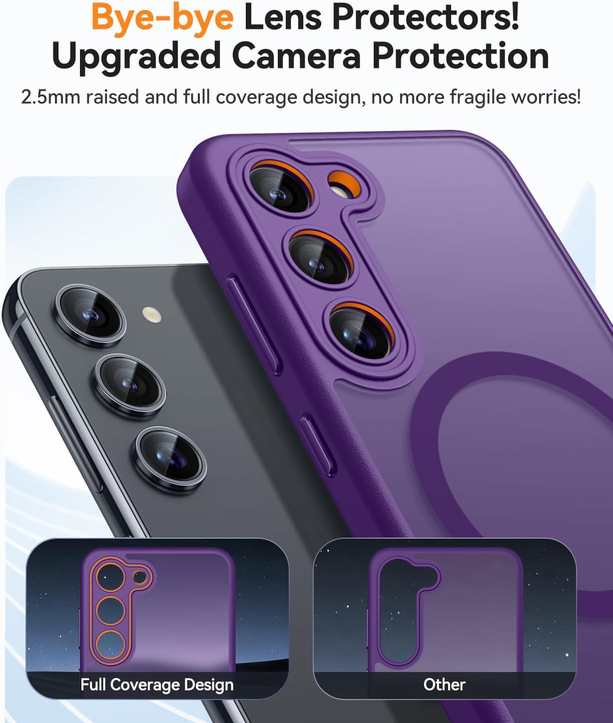 CANSHN Кейс за Samsung Galaxy S23 със защита на камерата за Magsafe (най-висока военна защита и магнитна сила) Изключително издръжлив кейс за мобилен телефон S23 - прозрачен матов тъмно лилав
