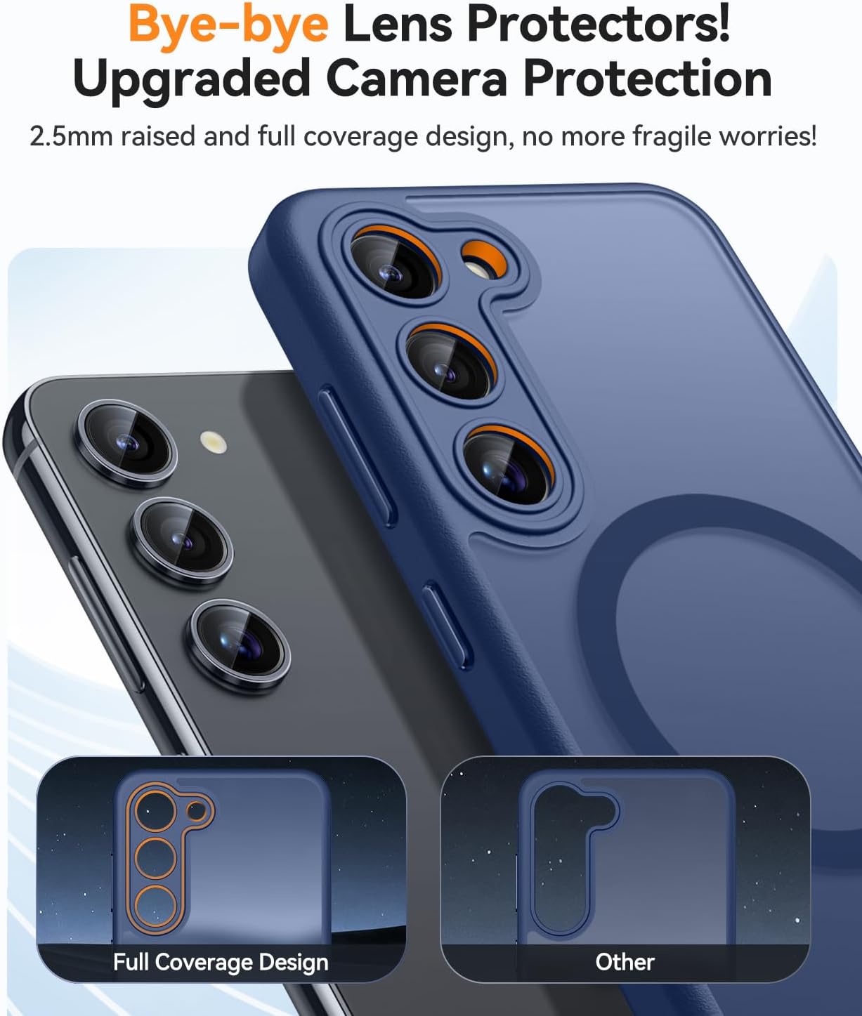 CANSHN Кейс за Samsung Galaxy S23 със защита на камерата за Magsafe (най-висока военна защита и магнитна сила) Изключително издръжлив кейс за мобилен телефон S23 - прозрачен матов тъмносин