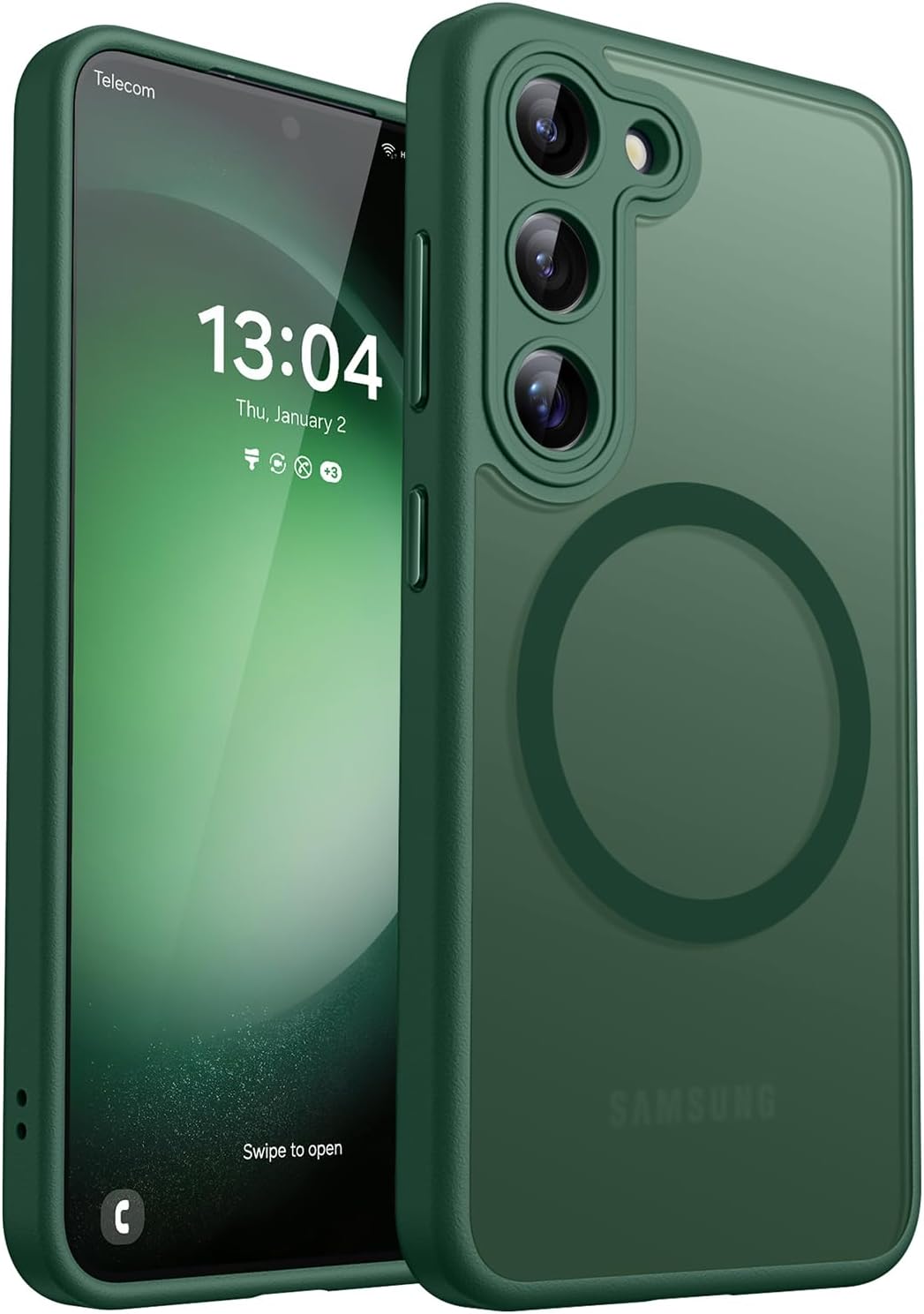 CANSHN Кейс за Samsung Galaxy S23 със защита на камерата за Magsafe (най-висока военна защита и магнитна сила) Изключително издръжлив кейс за мобилен телефон S23 - прозрачен матов тъмнозелен