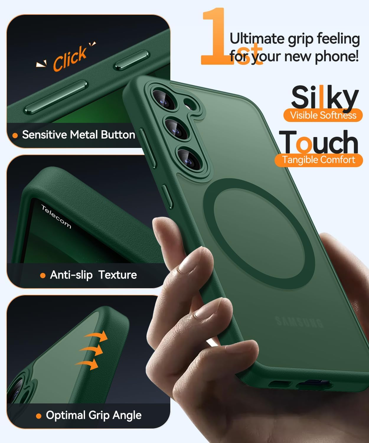 • [Силно магнитно привличане] С вградени мощни N52 магнити, този калъф за Samsung Galaxy S25 е напълно съвместим със зарядни устройства MagSafe. Той се свързва здраво и с други магнитни аксесоари, като магнитни портфейли, външни батерии и стойки за кола, осигурявайки сигурна и стабилна връзка, дори по време на въртене или движение.