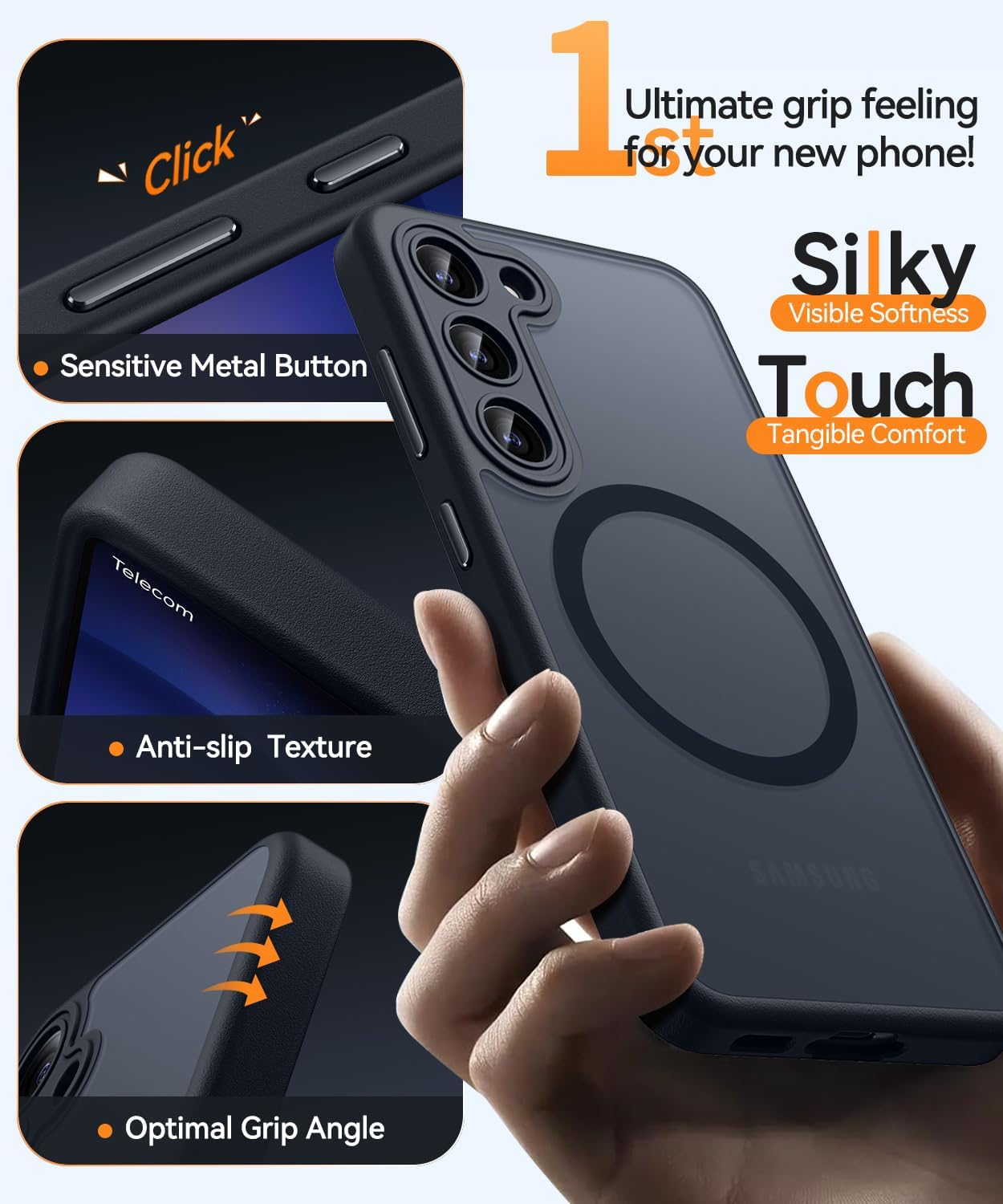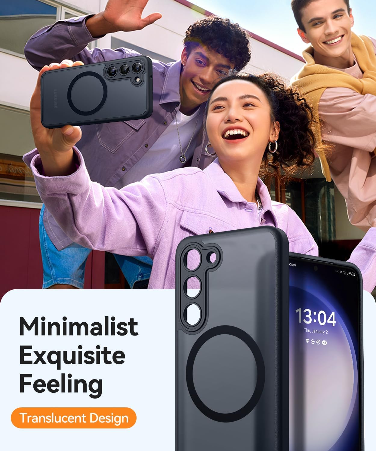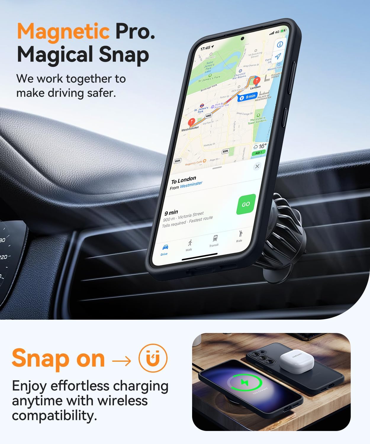 • [Силно магнитно привличане] С вградени мощни N52 магнити, този калъф за Samsung Galaxy S25 е напълно съвместим със зарядни устройства MagSafe. Той се свързва здраво и с други магнитни аксесоари, като магнитни портфейли, външни батерии и стойки за кола, осигурявайки сигурна и стабилна връзка, дори по време на въртене или движение.