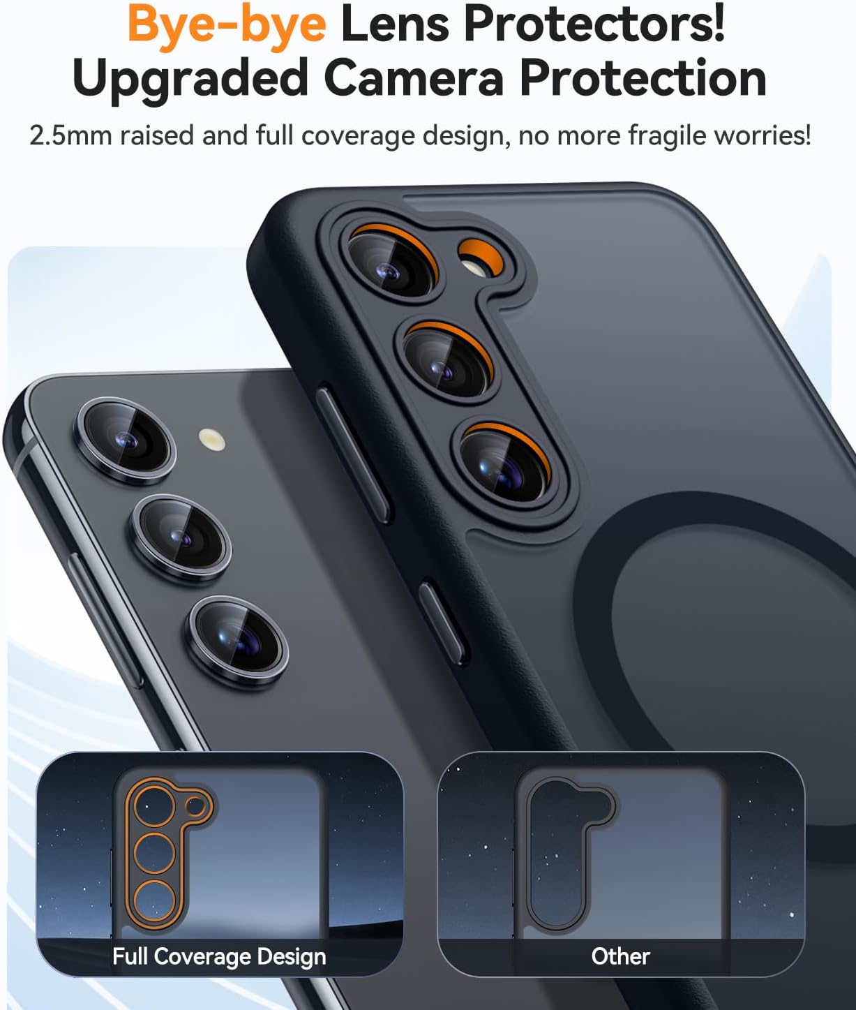 • [Подобрена пълна защита на камерата] Кажете сбогом на конвенционалните протектори за обективи! В сравнение с други обикновени калъфи за телефони, нашият калъф за Samsung Galaxy S25 предлага подобрена цялостна защита за камерата, с 2,5 мм висок ръб около обектива. Той осигурява цялостна защита за обектива, без да прави компромис със снимките.