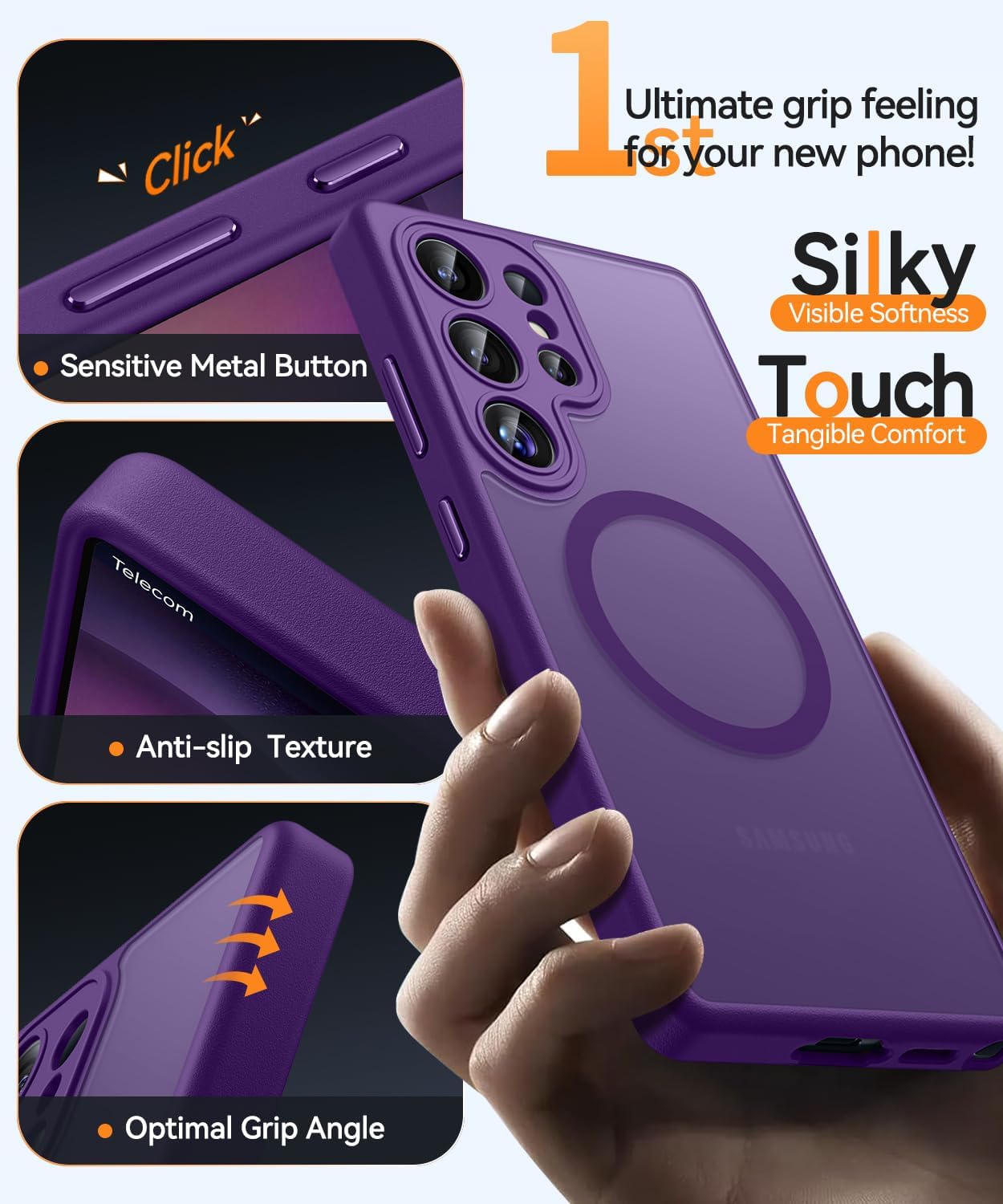 • [Силно магнитно привличане] С вградени мощни N52 магнити, този калъф за Samsung Galaxy S25 е напълно съвместим със зарядни устройства MagSafe. Той се свързва здраво и с други магнитни аксесоари, като магнитни портфейли, външни батерии и стойки за кола, осигурявайки сигурна и стабилна връзка, дори по време на въртене или движение.
