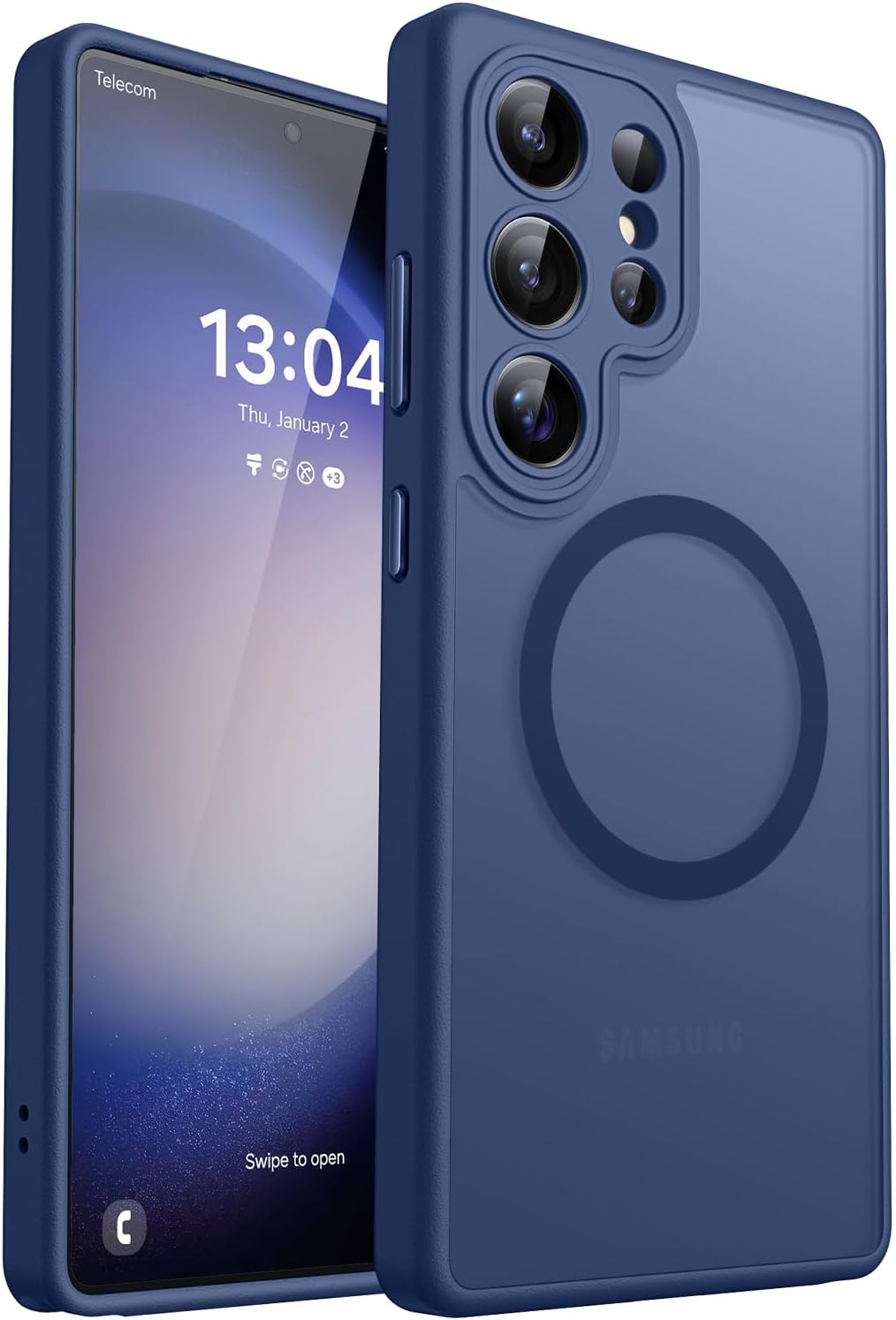 CANSHN Кейс за Samsung Galaxy S23 Ultra със защита на камерата за Magsafe (най-висока военна защита и магнитна сила) Изключително издръжлив кейс за мобилен телефон S23 Ultra - прозрачен матов тъмносин