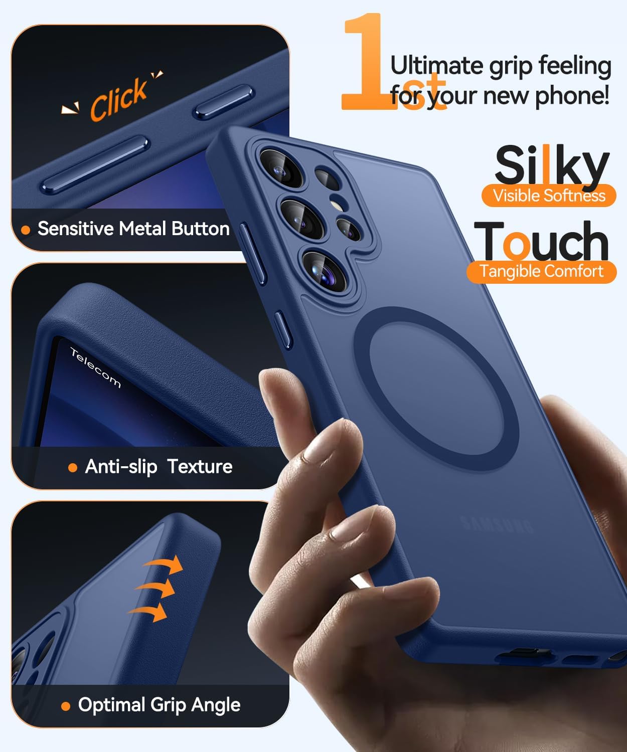 • [Силно магнитно привличане] С вградени мощни N52 магнити, този калъф за Samsung Galaxy S25 е напълно съвместим със зарядни устройства MagSafe. Той се свързва здраво и с други магнитни аксесоари, като магнитни портфейли, външни батерии и стойки за кола, осигурявайки сигурна и стабилна връзка, дори по време на въртене или движение.