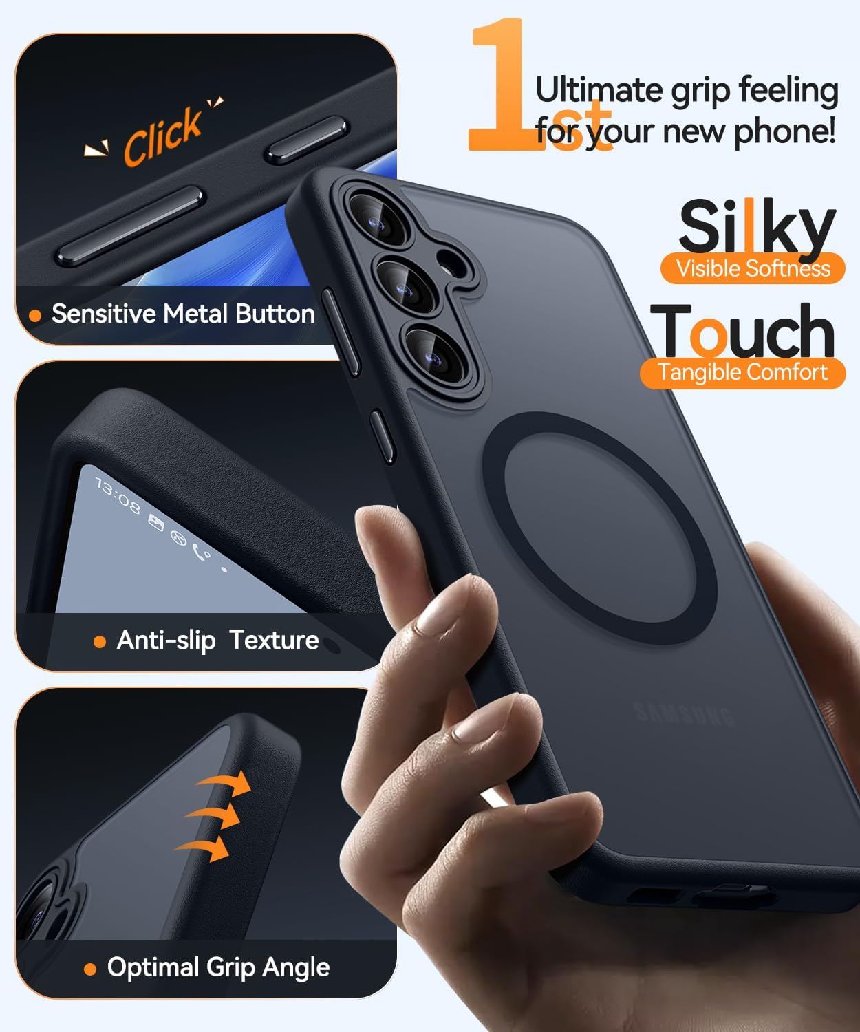 • [Силно магнитно привличане] С вградени мощни N52 магнити, този калъф за Samsung Galaxy S25 е напълно съвместим със зарядни устройства MagSafe. Той се свързва здраво и с други магнитни аксесоари, като магнитни портфейли, външни батерии и стойки за кола, осигурявайки сигурна и стабилна връзка, дори по време на въртене или движение.