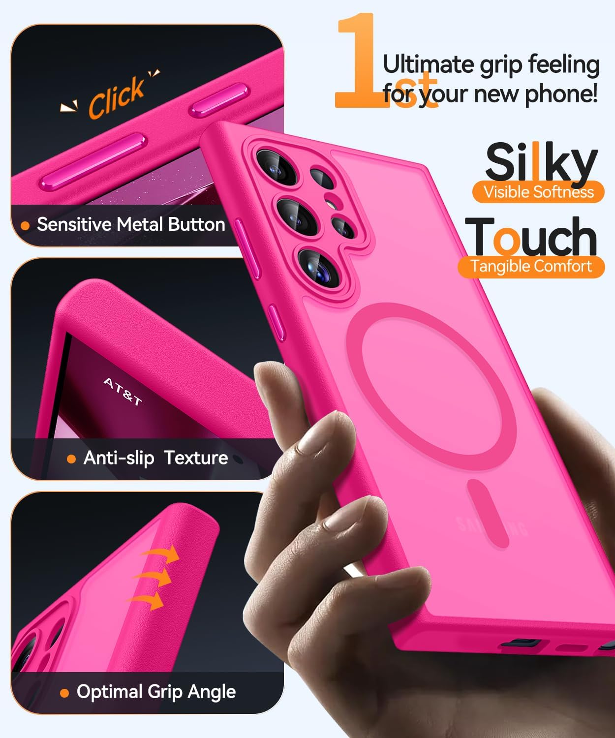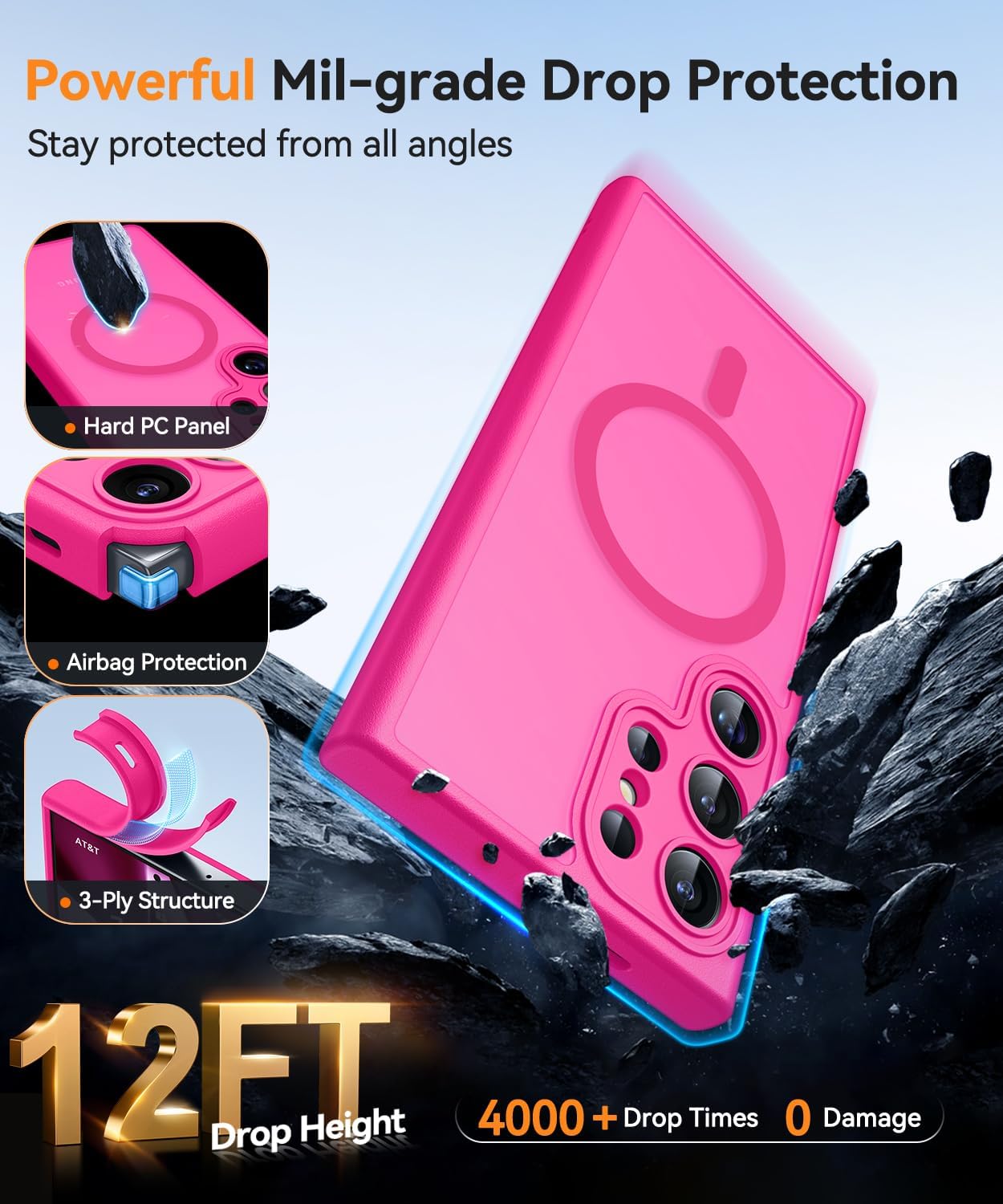 • [Силно магнитно привличане] С вградени мощни N52 магнити, този калъф за Samsung Galaxy S25 е напълно съвместим със зарядни устройства MagSafe. Той се свързва здраво и с други магнитни аксесоари, като магнитни портфейли, външни батерии и стойки за кола, осигурявайки сигурна и стабилна връзка, дори по време на въртене или движение.