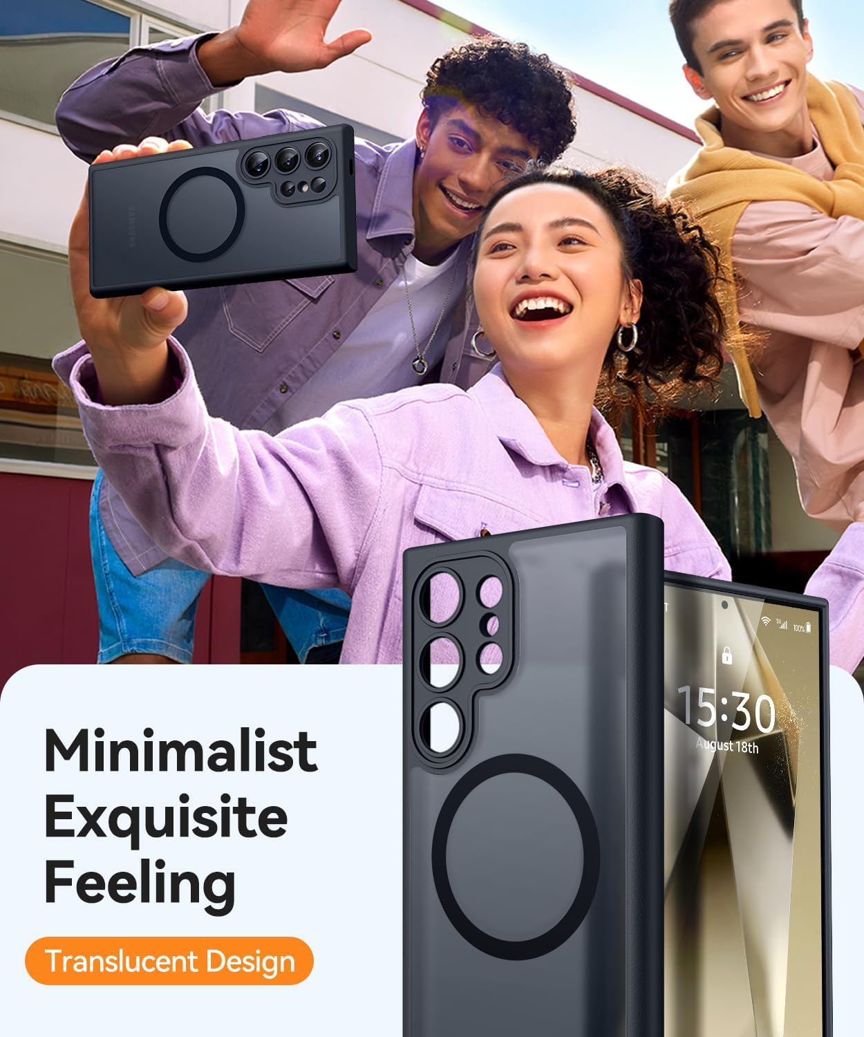 • [Силно магнитно привличане] С вградени мощни N52 магнити, този калъф за Samsung Galaxy S25 е напълно съвместим със зарядни устройства MagSafe. Той се свързва здраво и с други магнитни аксесоари, като магнитни портфейли, външни батерии и стойки за кола, осигурявайки сигурна и стабилна връзка, дори по време на въртене или движение.