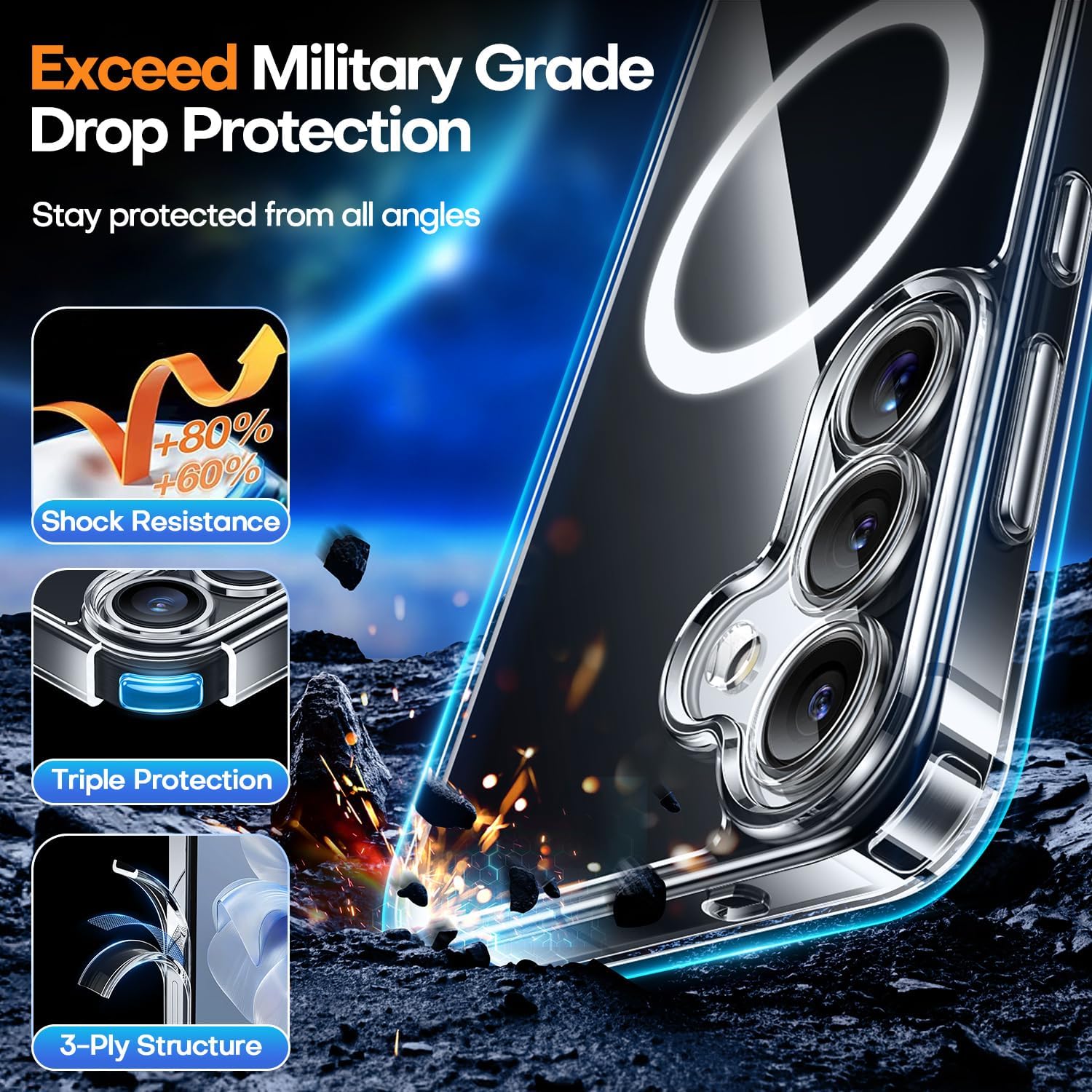 CANSHN Кейс за Samsung Galaxy S25 Plus със защита на камерата за Magsafe (най-висока военна защита и магнитна сила) Изключително издръжлив кейс за мобилен телефон S25 Plus - прозрачен