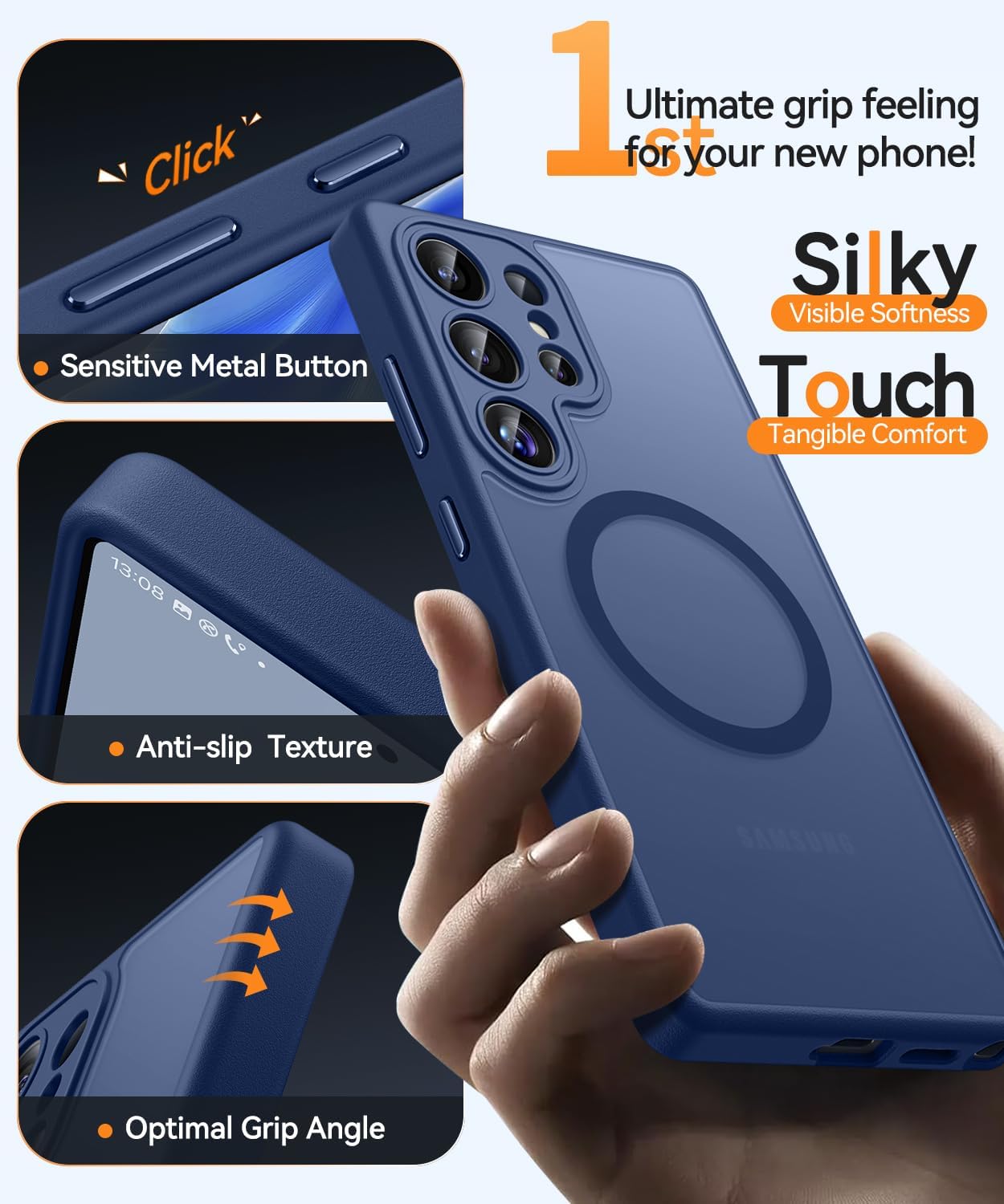 • [Силно магнитно привличане] С вградени мощни N52 магнити, този калъф за Samsung Galaxy S25 е напълно съвместим със зарядни устройства MagSafe. Той се свързва здраво и с други магнитни аксесоари, като магнитни портфейли, външни батерии и стойки за кола, осигурявайки сигурна и стабилна връзка, дори по време на въртене или движение.