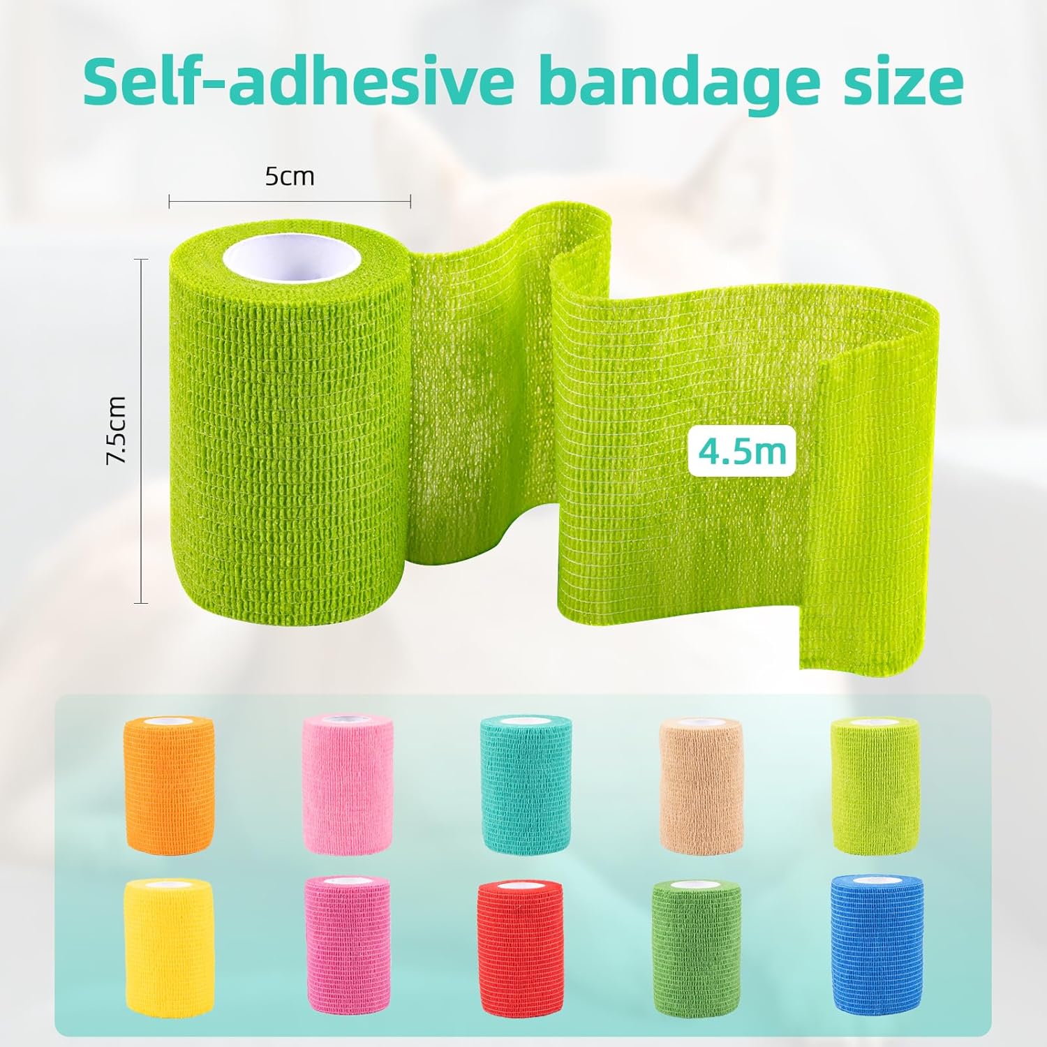 Carehabi 10 ролки самозалепваща се превръзка, 7,5 см x 4,5 м, превръзки за домашни любимци, самозалепваща се еластична превръзка за китка, глезен, пръст, коляно