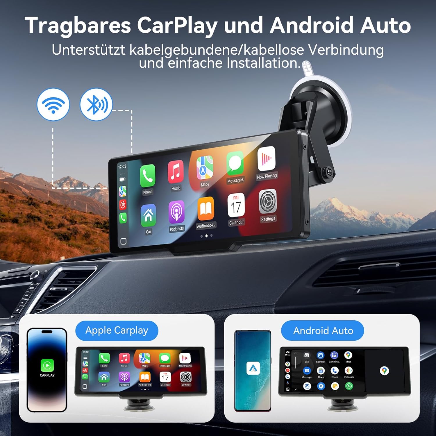 Carpeer CarPlay & Android Auto Display Car Stereo, Auto-Display, 10.26-Zoll-IPS-Touchscreen