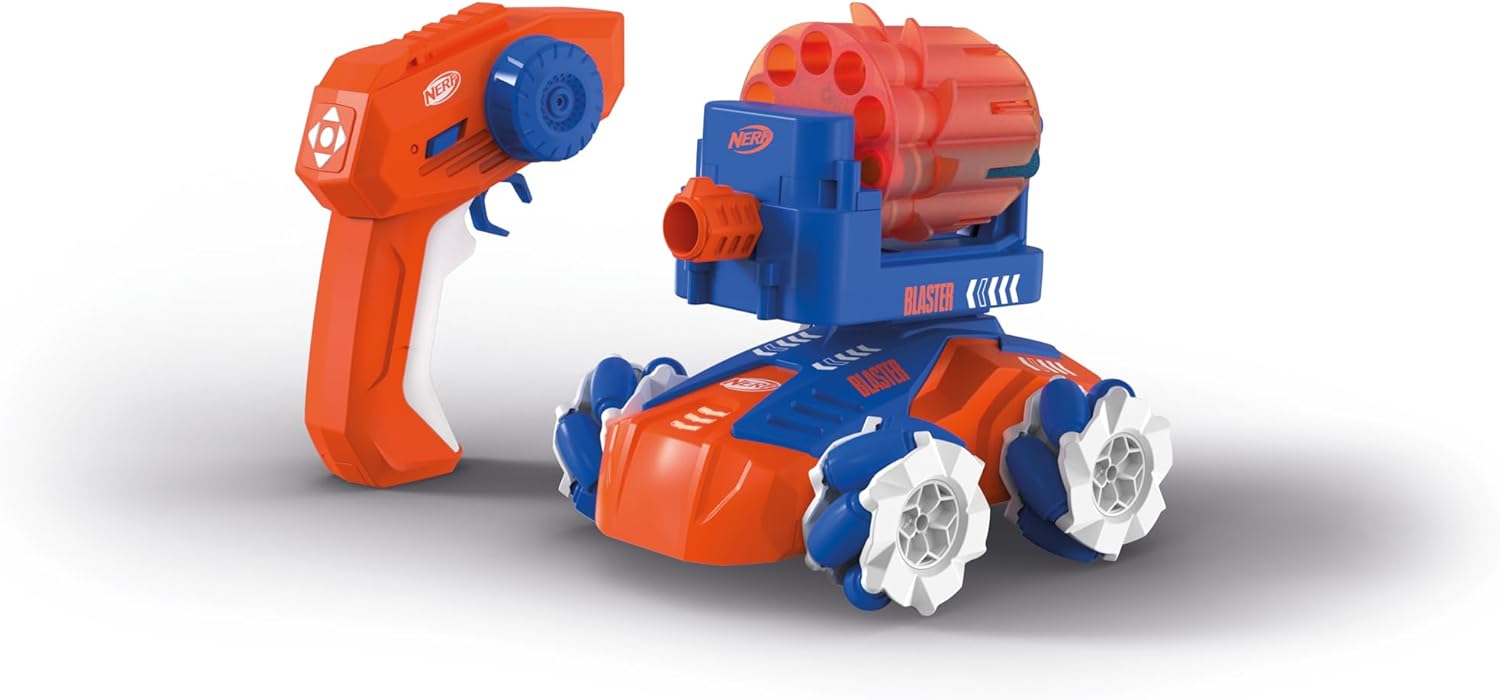 RC превозно средство, оригинален лиценз, шофиране и стрелба с оригинални Nerf меки стрелички, включва 10 броя. Nerf меки стрелички. Пълнителите могат да се прикрепят към превозното средство и контролера. Включва мишена, пълна функция за шофиране и управление, лесно управление, задвижващо действие, твърди пластмасови гуми, двупосочно шофиране, LED светлина, включен пакет от 2. Особено безопасна и издръжлива LiFePo4 батерия * включен допълнителен 0.5 A USB кабел за бързо зареждане.
