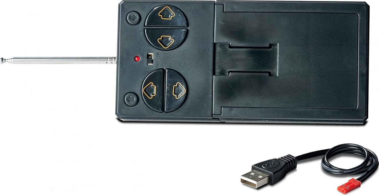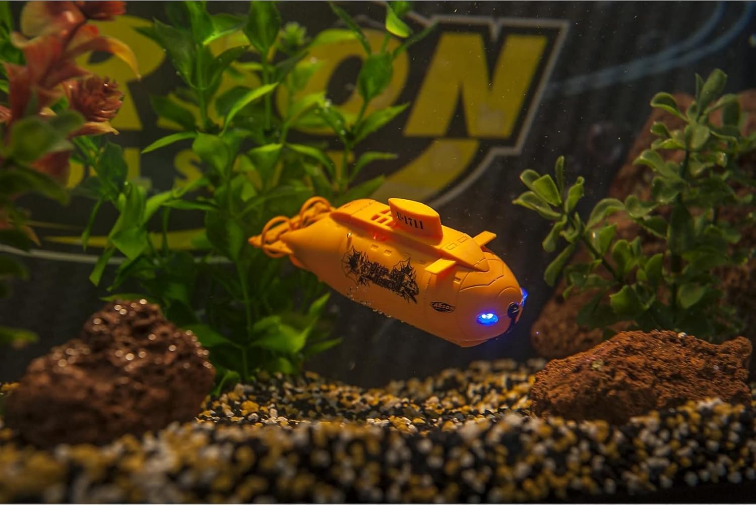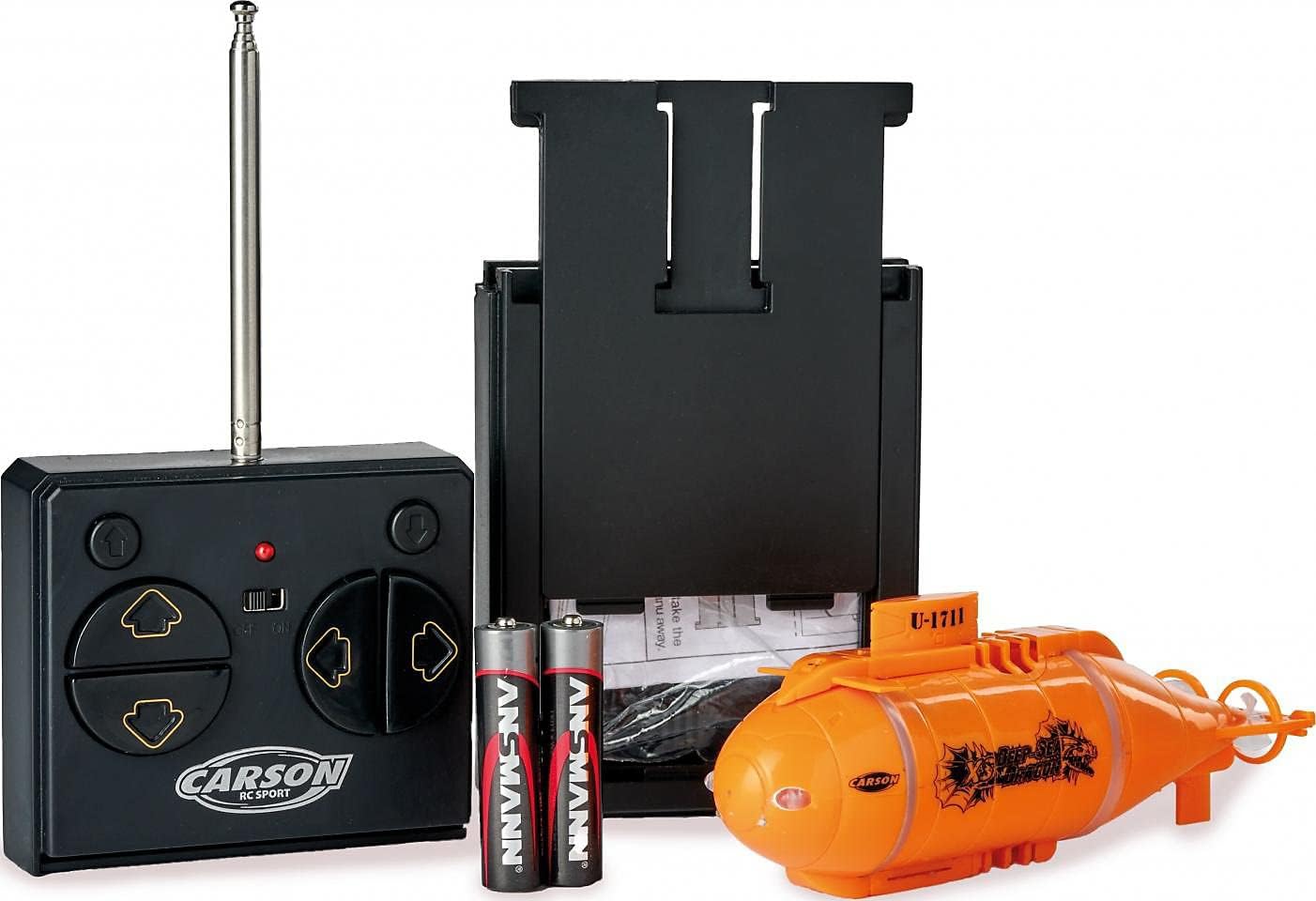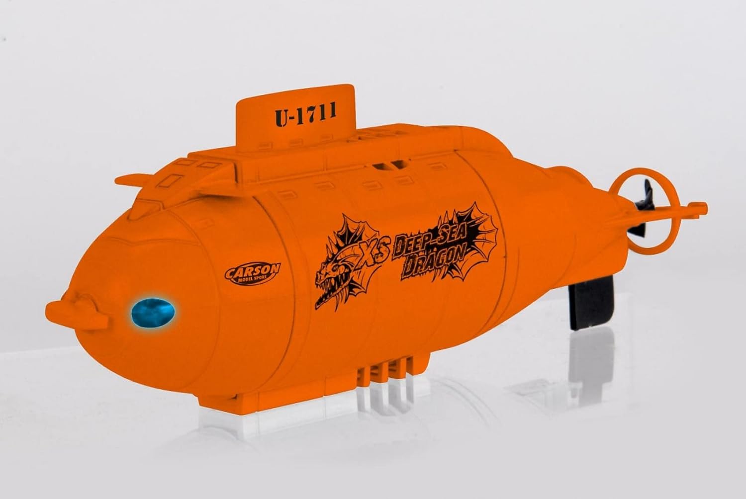 Мини подводницата се управлява от 40 MHz 3-канално дистанционно управление, което служи и като станция за зареждане. Предавателят съдържа 4 висококачествени батерии Ansmann Energy Mignon. Два сини светодиода светят ярко по време на работа и правят подводницата ясно видима. Могат да се контролират следните функции за шофиране: напред/назад, наляво/надясно, както и надолу и изплуване.