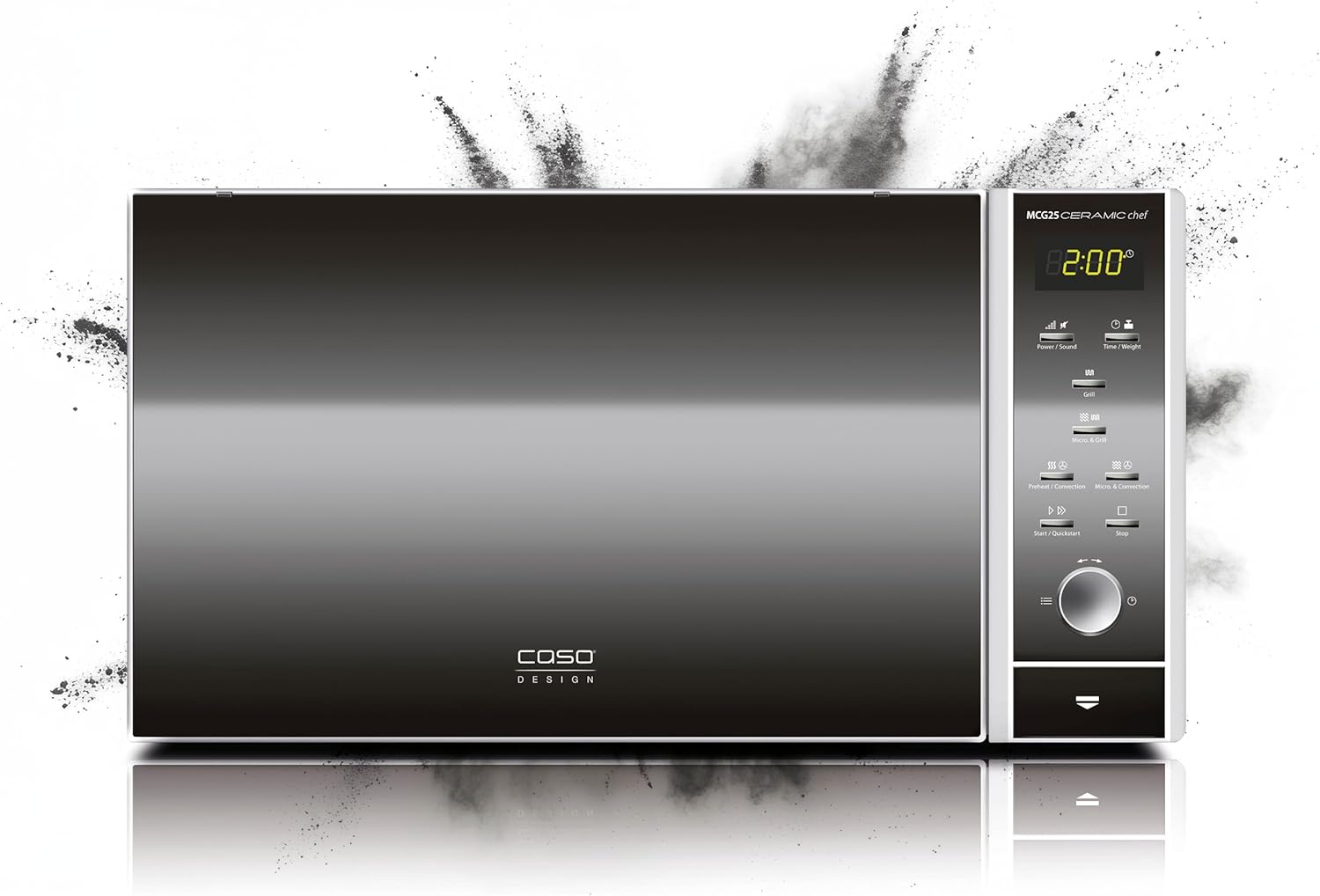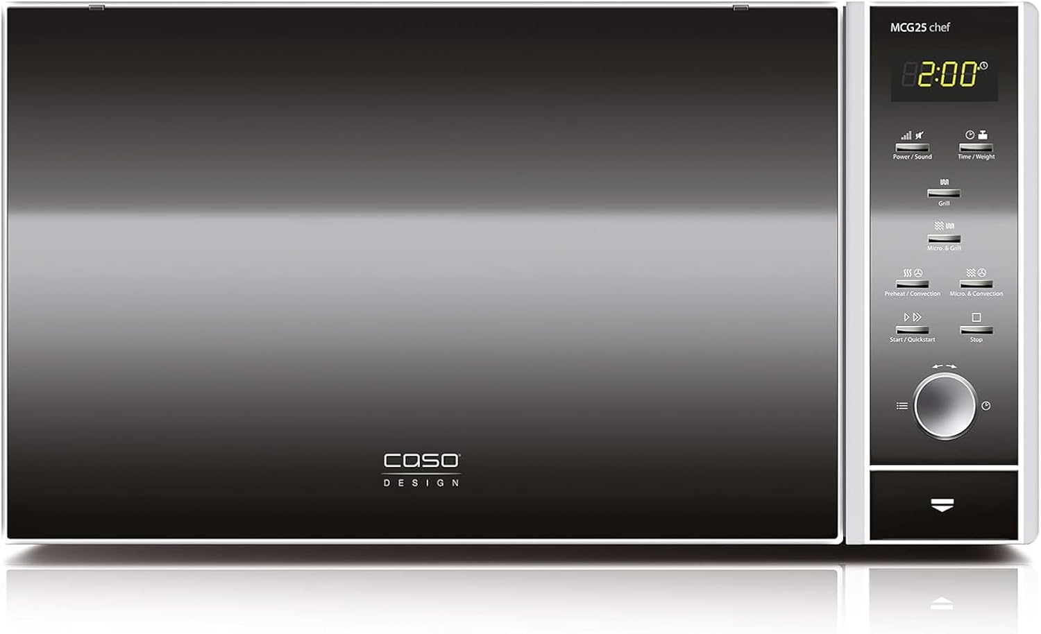 CASO | MCG25 chef микровълнова фурна 3 в 1 с грил и горещ въздух 1950 W | Функция фурна до 200 °C, въртяща се чиния Ø 27 см, 25 л, огледален дизайн от неръждаема стомана