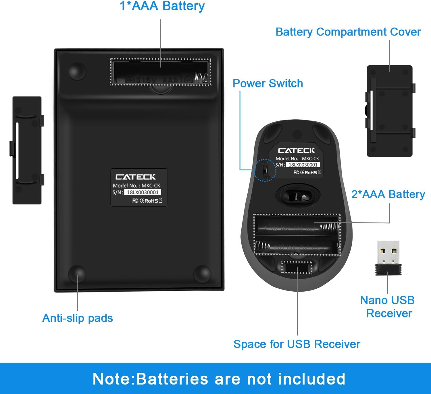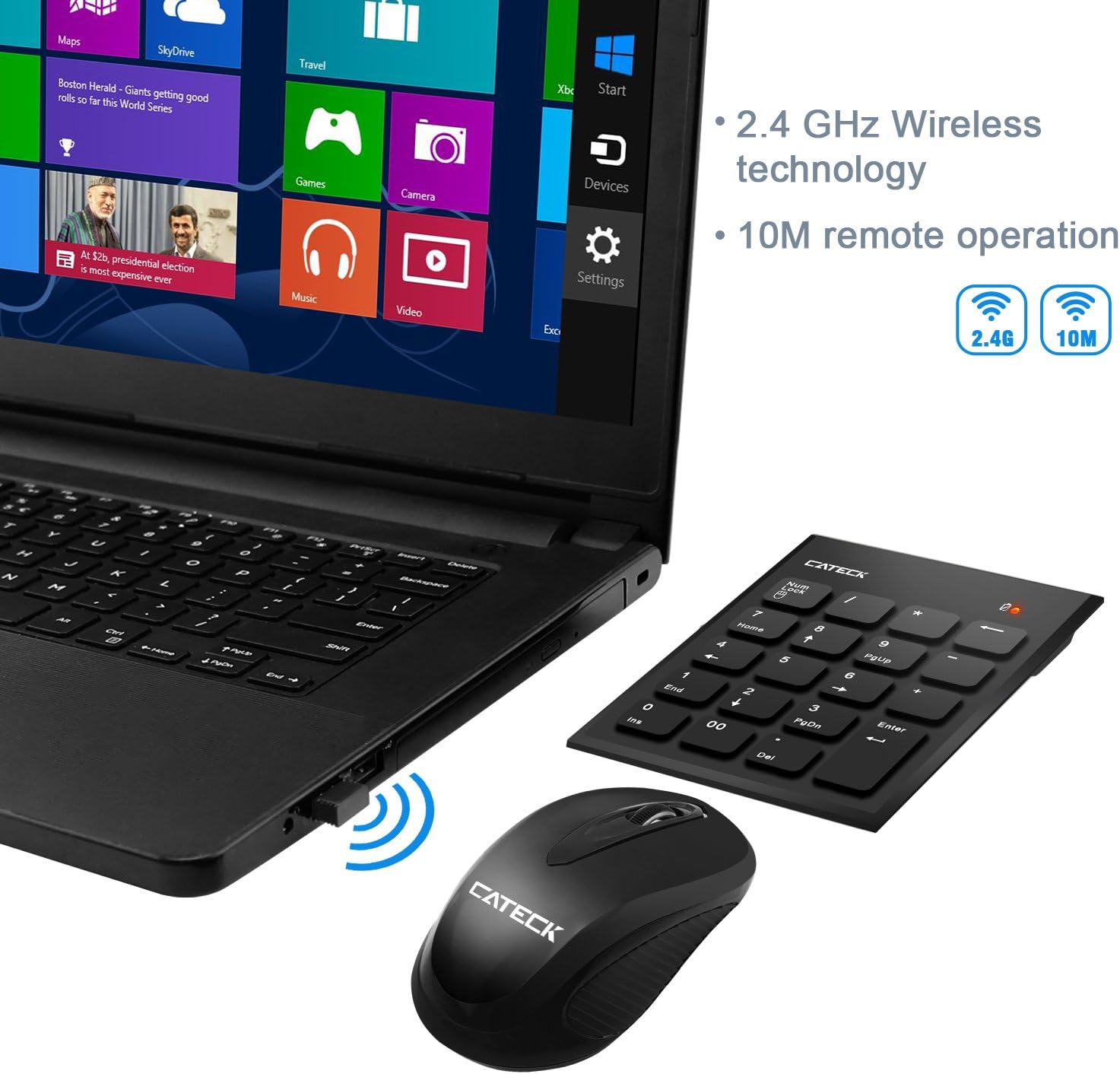 Cateck 2 в 1 2.4G Безжичната мини USB цифрова клавиатура и мишка е перфектният аксесоар, който да допълни работното ви място. Трябва само да включите приемника в USB порт на вашия компютър. Поддържа пълна цифрова клавиатура с NUMLOCK. Безжичната цифрова клавиатура е чудесно безжично решение за разширяване на съществуващата ви клавиатура. Опростява живота ви.