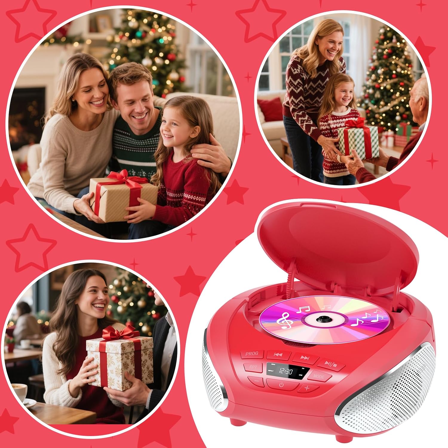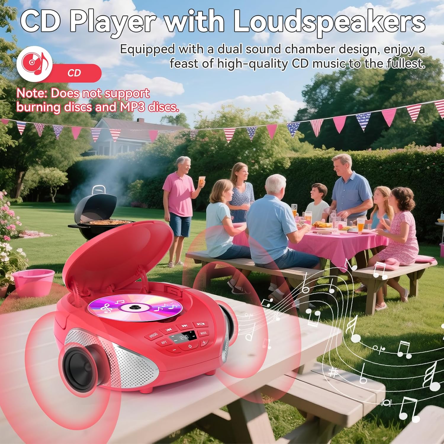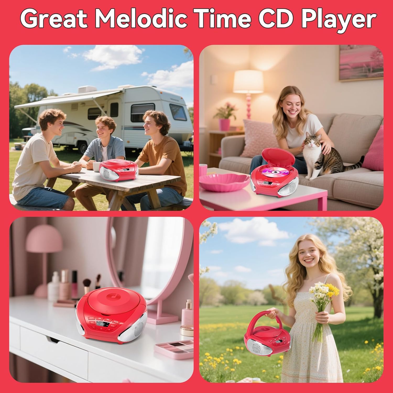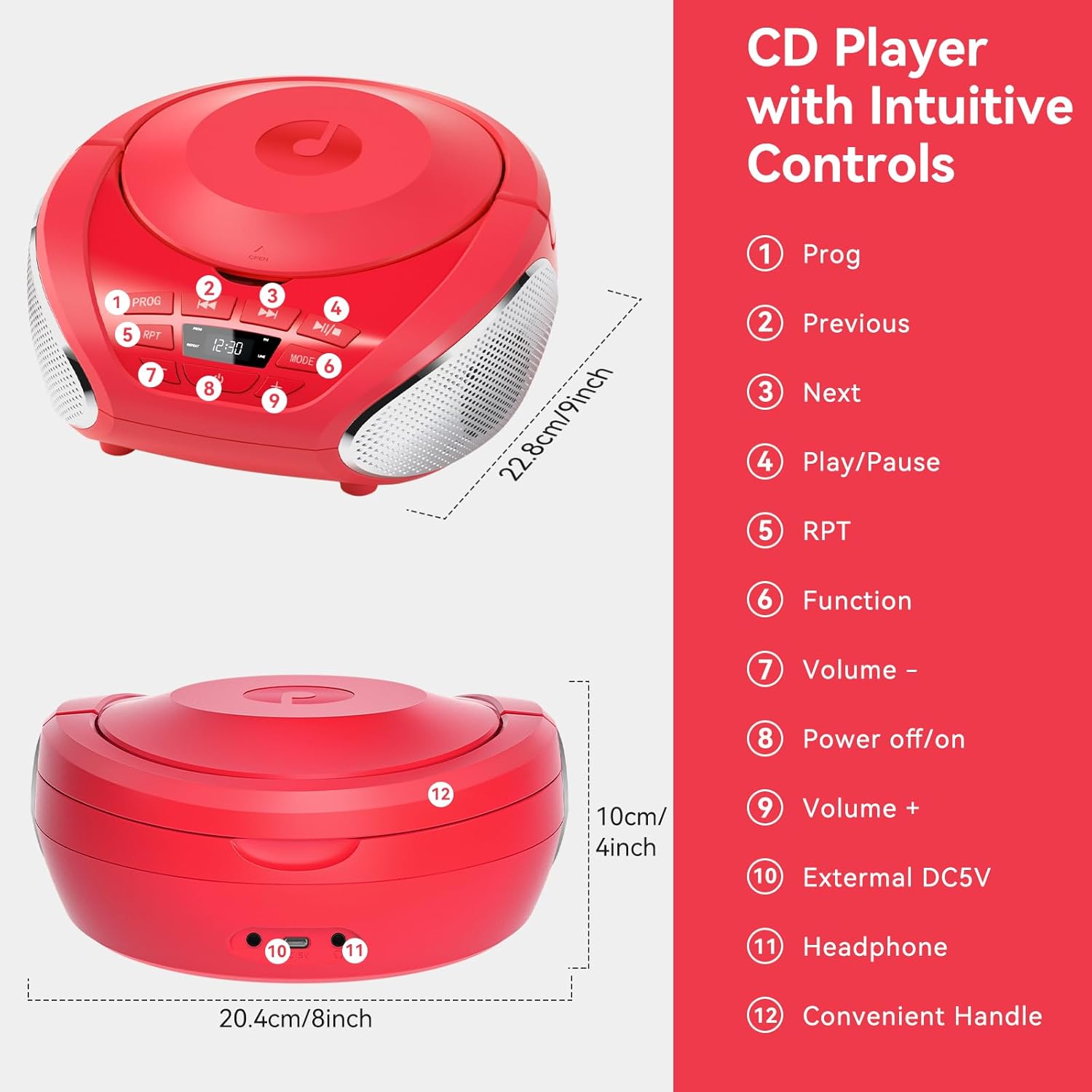 CD плейър Gueray, преносимо радио Boombox със CD плейър, CD плейър с високоговорител, поддръжка на дисплей, FM радио, функция за памет, PROG възпроизвеждане, AUX възпроизвеждане, червено