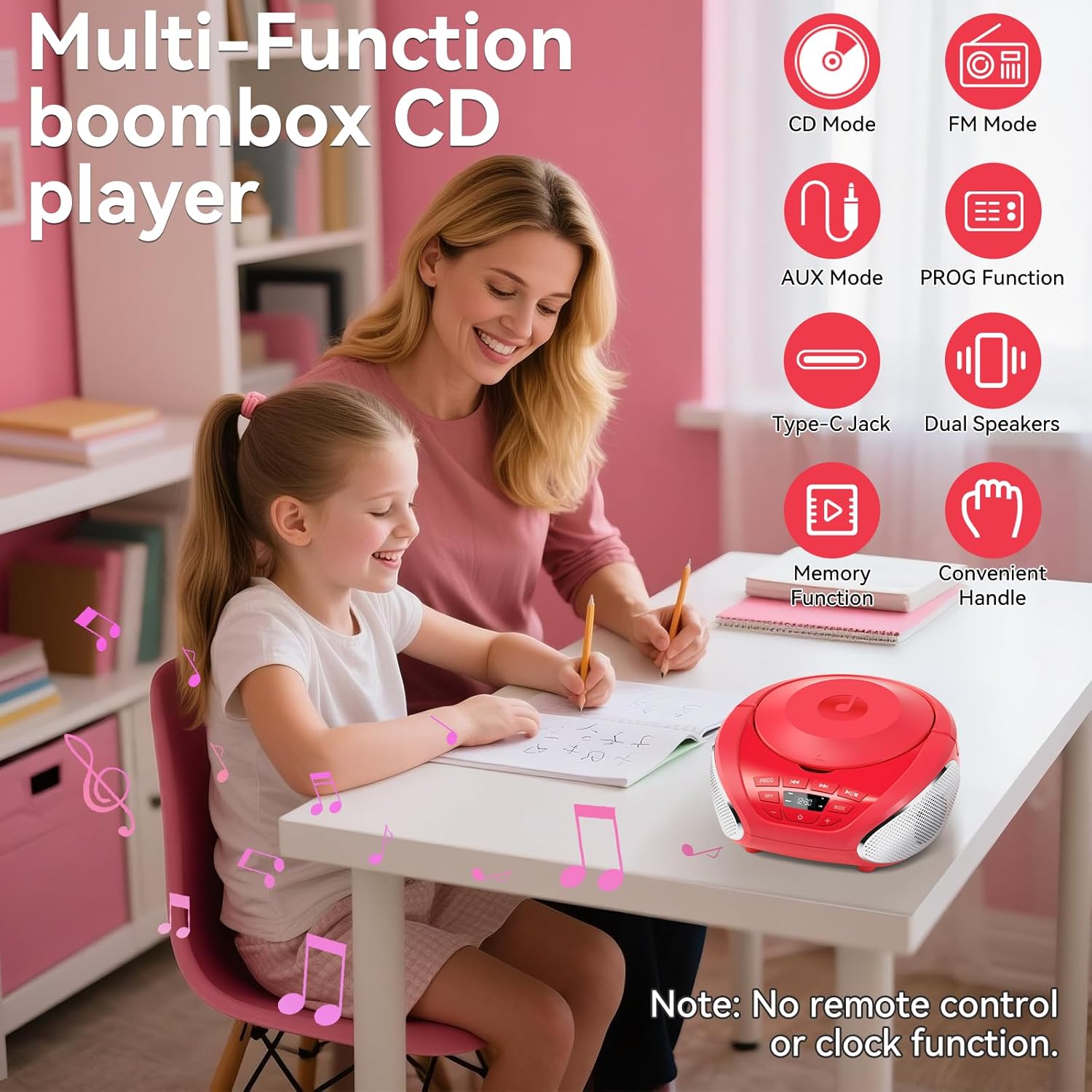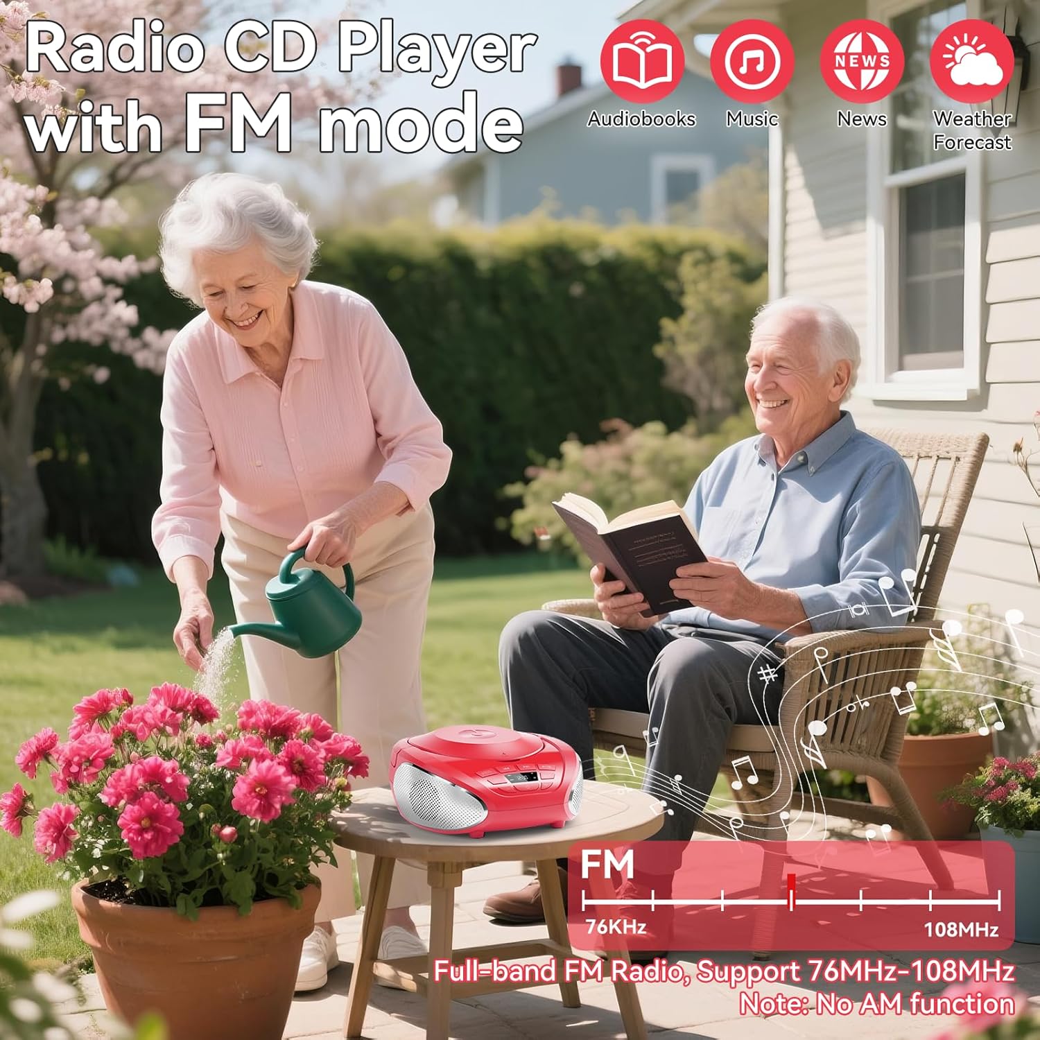 • МНОГО РЕЖИМИ НА ВЪЗПРОИЗВЕЖДАНЕ Предоставя различни опции за слушане, включително възпроизвеждане на CD, FM радио и режим AUX/LINE. Поддържа повторение на една песен, повторение на цялата песен и плейлисти, функция за памет и функция за програмиране. Идеален за семейства, търсещи образователни инструменти (като образователни CD-та) за деца, а също така подходящ за възрастни хора, които се нуждаят от радио със CD плейър, за да слушат предавания или аудиокниги.