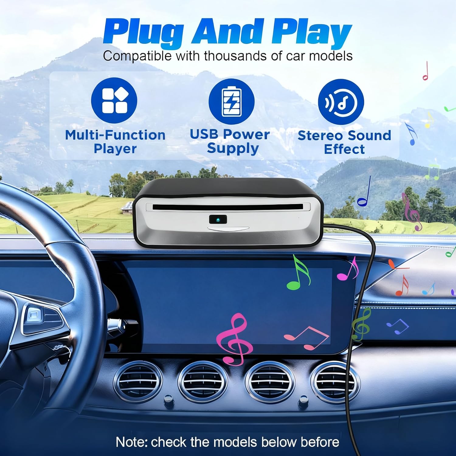 • 【Насладете се на вашия плейър】Автомобилен CD плейър с USB порт за автомобилно радио: С това USB устройство можете да се наслаждавате на цялата музика или аудиокниги на вашия твърд диск. Той работи стабилно и ефективно, независимо дали е поставен хоризонтално или вертикално. Автомобилна катастрофа няма да повлияе на възпроизвеждането на музика на автомобилното ви радио.