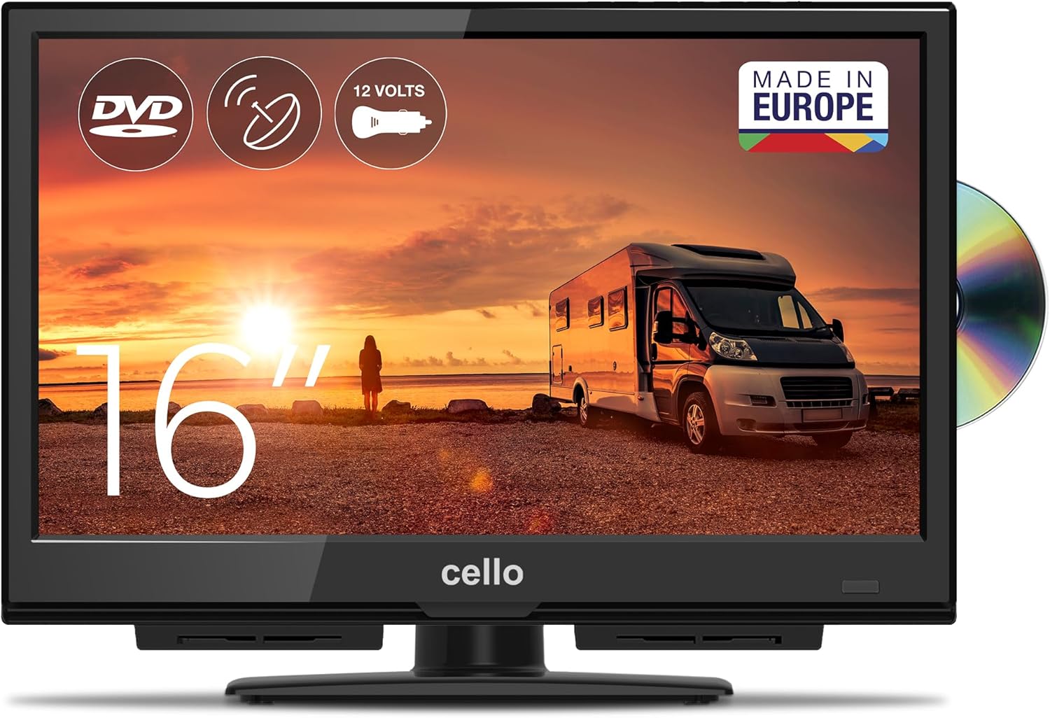 • Универсална съвместимост: Идеален за каравани, лодки, камиони или кемпери с 12V захранване – но работи и със захранване от електрическата мрежа. И двата кабела (12V и захранване от електрическата мрежа) са включени. Оборудван с 2 HDMI порта, 1 оптичен порт, 2 RF порта, 2 USB порта и Bluetooth – за лесно свързване със саундбари и други устройства.