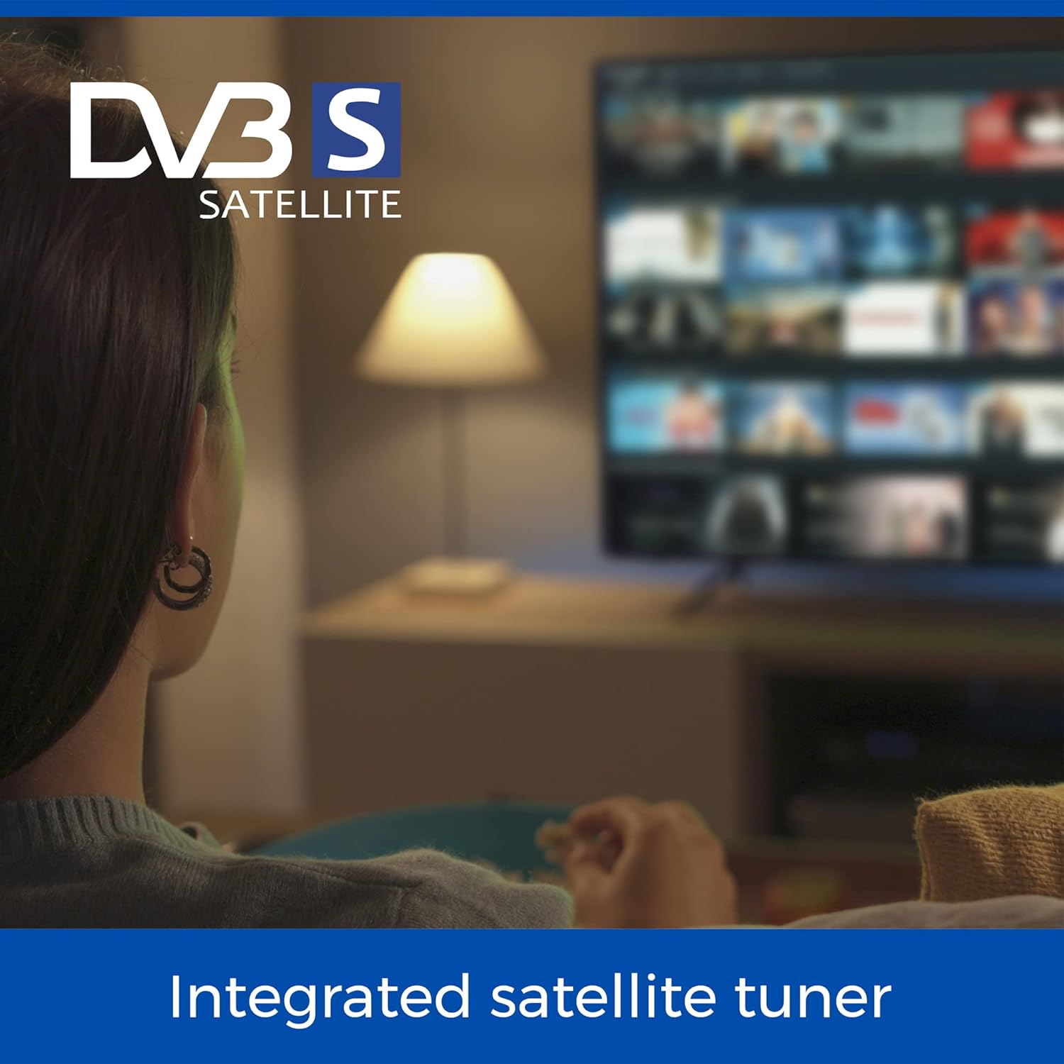 • Троен тунер: Насладете се на изключително ясна HD резолюция с вградения DVB-C/-S2/-T2 тунер и достъп до широка гама от цифрови канали. Записвайте любимите си предавания чрез USB и възпроизвеждайте медийни файлове от външни устройства.