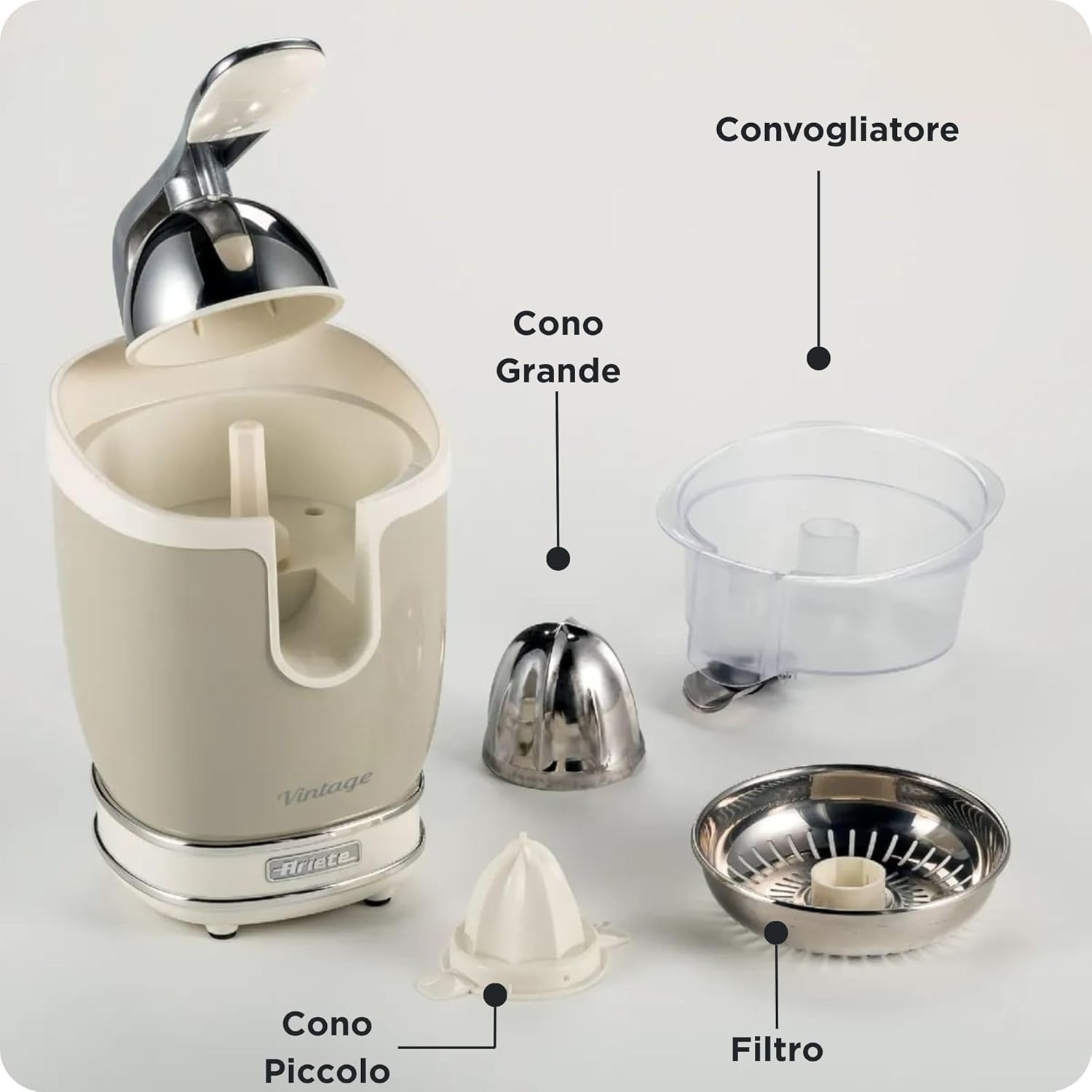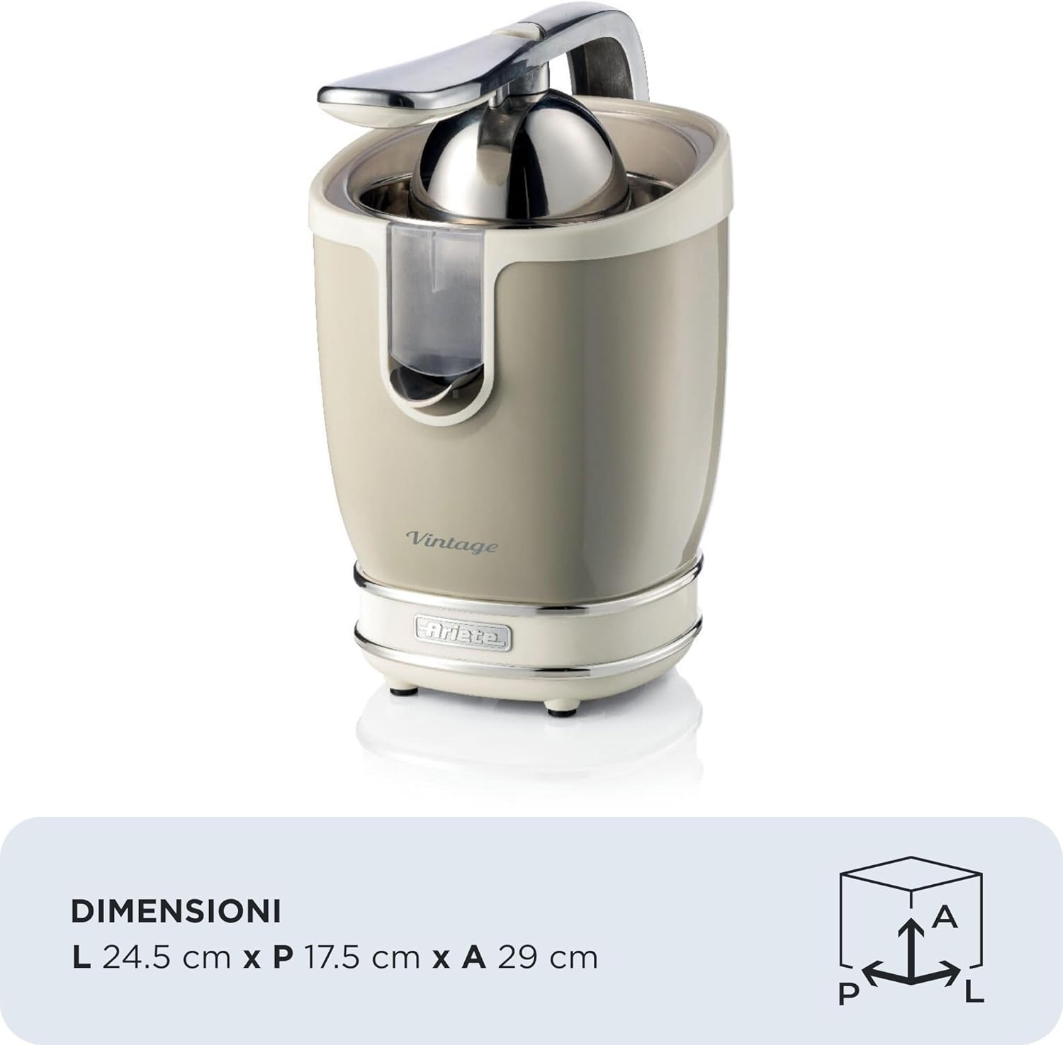 Цитрусовата сокоизстисквачка от серията Capri съчетава изискан дизайн с практична функционалност и внася средиземноморския чар на Capri директно във вашата кухня. С мощен, тих мотор, здрав метален корпус и елегантна хромирана повърхност, тя впечатлява както визуално, така и със своята ефективност. Оборудвана с два конуса от неръждаема стомана - единият голям за портокали и грейпфрути, а другият с удобен щифт за захващане за лимони и лаймове - цитрусовата сокоизстисквачка предлага максимална гъвкавост. Професионалният лост за налягане позволява лесно изцеждане, а чучурът от неръждаема стомана осигурява прецизно освобождаване на сок без разхищение. Благодарение на внимателно обмислената конструкция, работната повърхност остава чиста, а почистването е изключително лесно. Тази цитрусова сокоизстисквачка е перфектният избор за всеки, който цени стила, комфорта и професионалните резултати - независимо дали е за сутрешен витаминен шок или за освежаващи напитки междувременно.