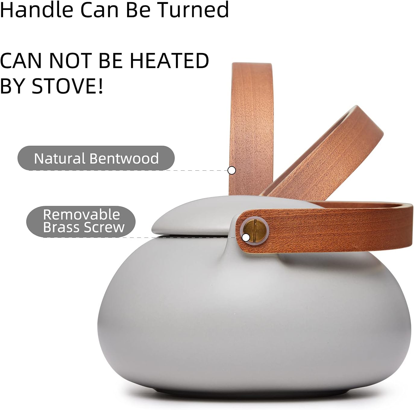 • Дръжка от естествено извито дърво - Акцентът на този чайник несъмнено е дръжката от извито дърво, която придава на керамичния чайник винтидж вид. Тя може да се завърти на 90° за лесно пълнене и лесно да се отстрани от страничния винт. Моля, затегнете медния винт на дръжката преди първа употреба.