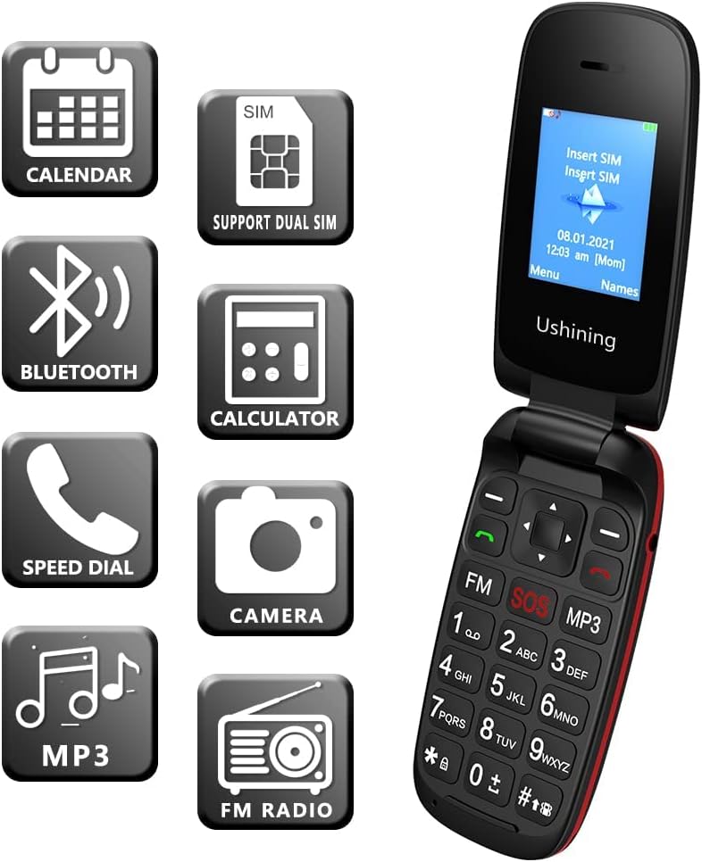 • Многофункционален, достъпен, класически телефон: Лесният за употреба сгъваем телефон има функции като будилник, калкулатор, MP3/MP4 плейър, Bluetooth, 3.0 FM радио, камера. Телефонът поддържа максимален капацитет на картата памет 32 GB.