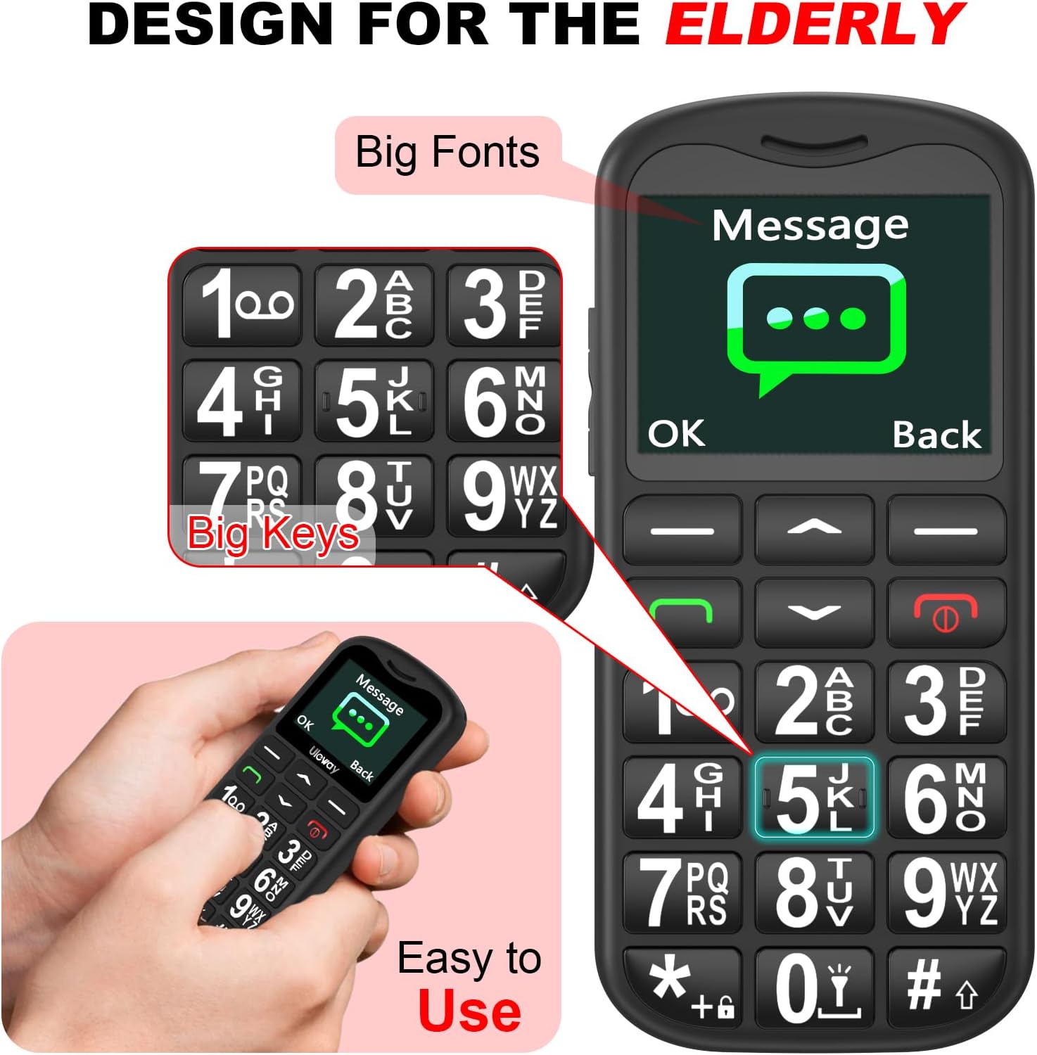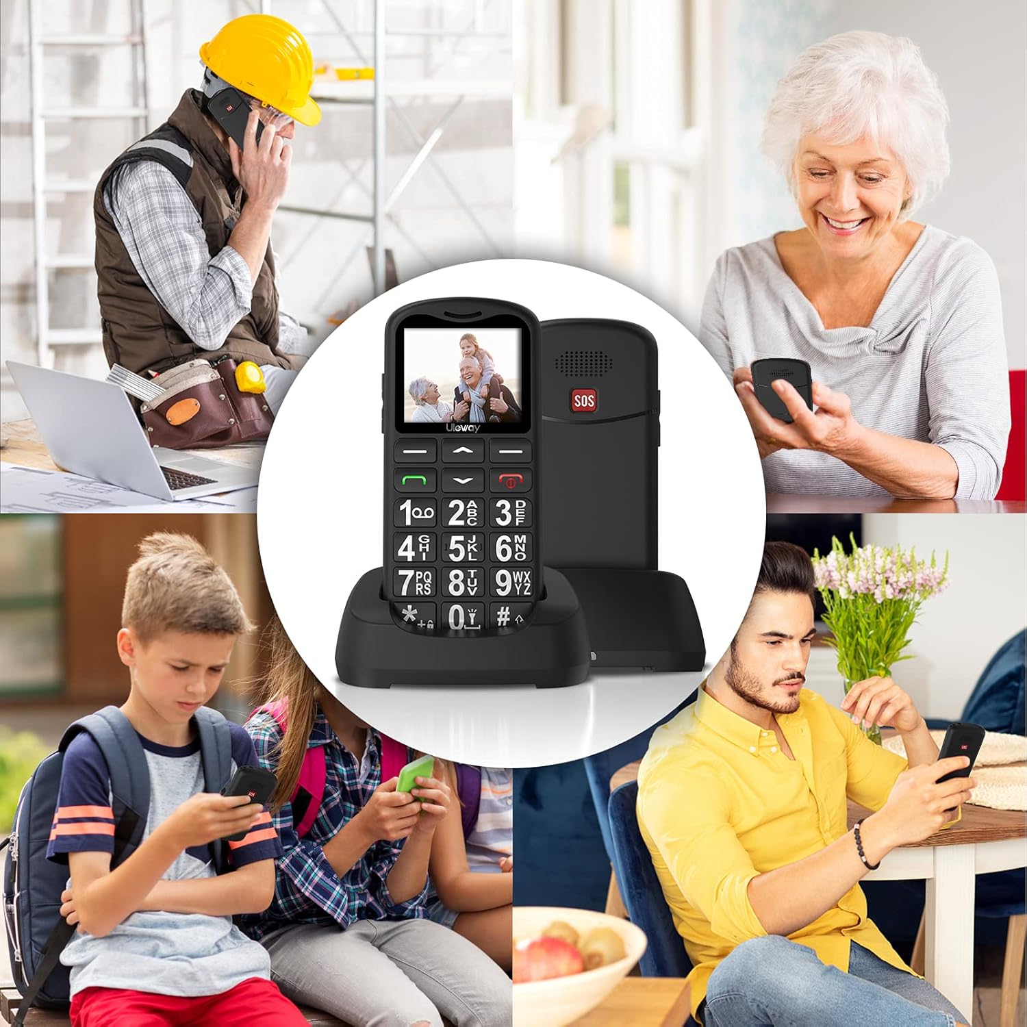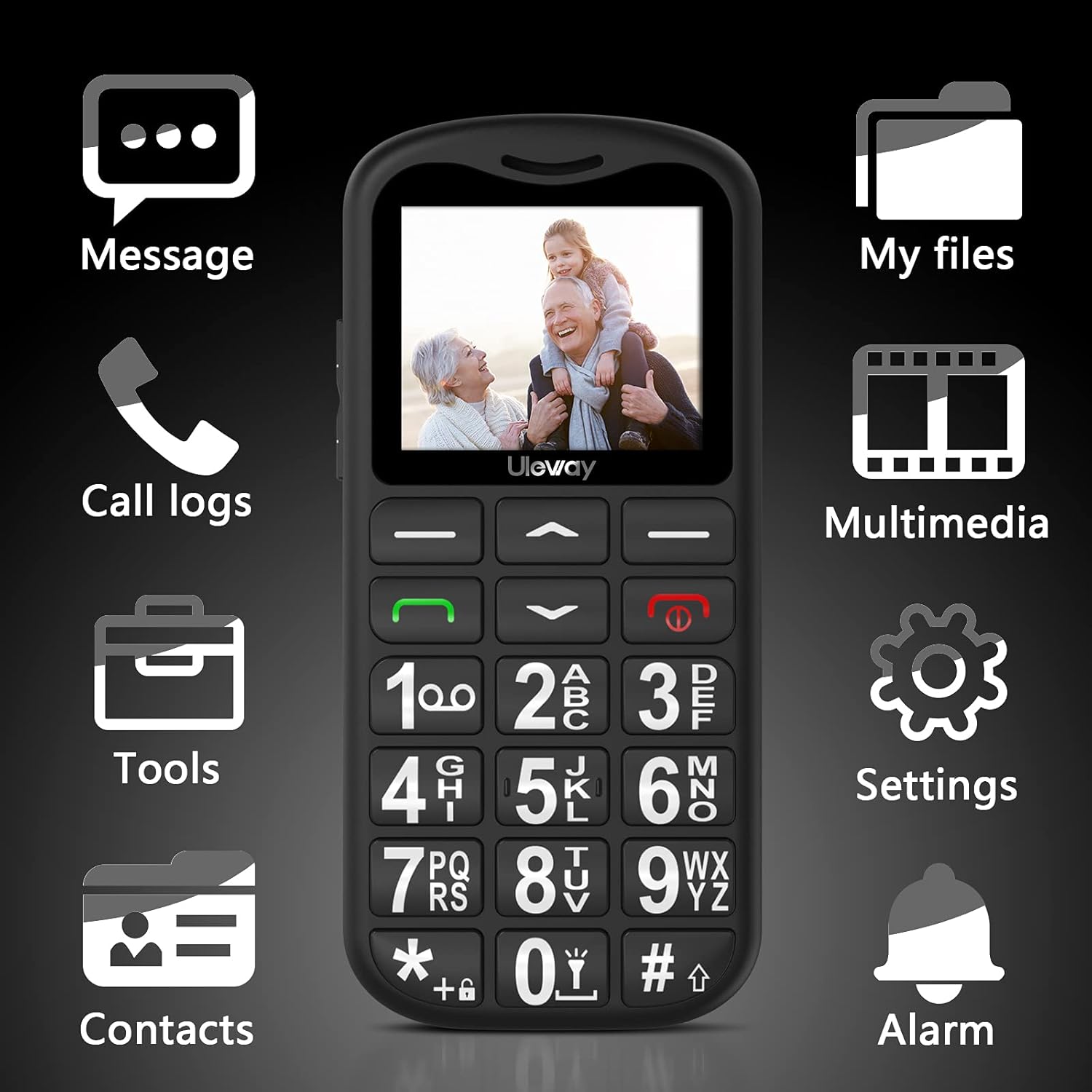 • Мобилен телефон с големи бутони за възрастни хора: мобилни телефони за възрастни хора, голям 1,7-инчов дисплей, операционната система има по-големи шрифтове, по-ясни икони на менюто, удивително висока сила на звука и ясни високоговорители. Разполага с аудио, видео, Bluetooth, FM аудио, камера, калкулатор, будилник, календар. Може да съхранява 100 записа в телефонния указател. Много подходящ е за възрастни хора, деца и хора с увредено зрение.