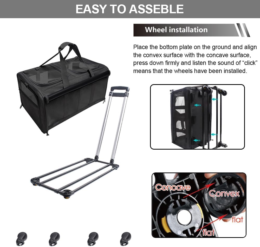 The four Wheels very smooth and it can absorb the shock of the ground,smooth and quiet.When the carrier turns, it will not lean.