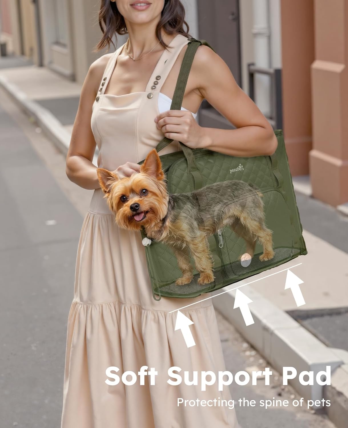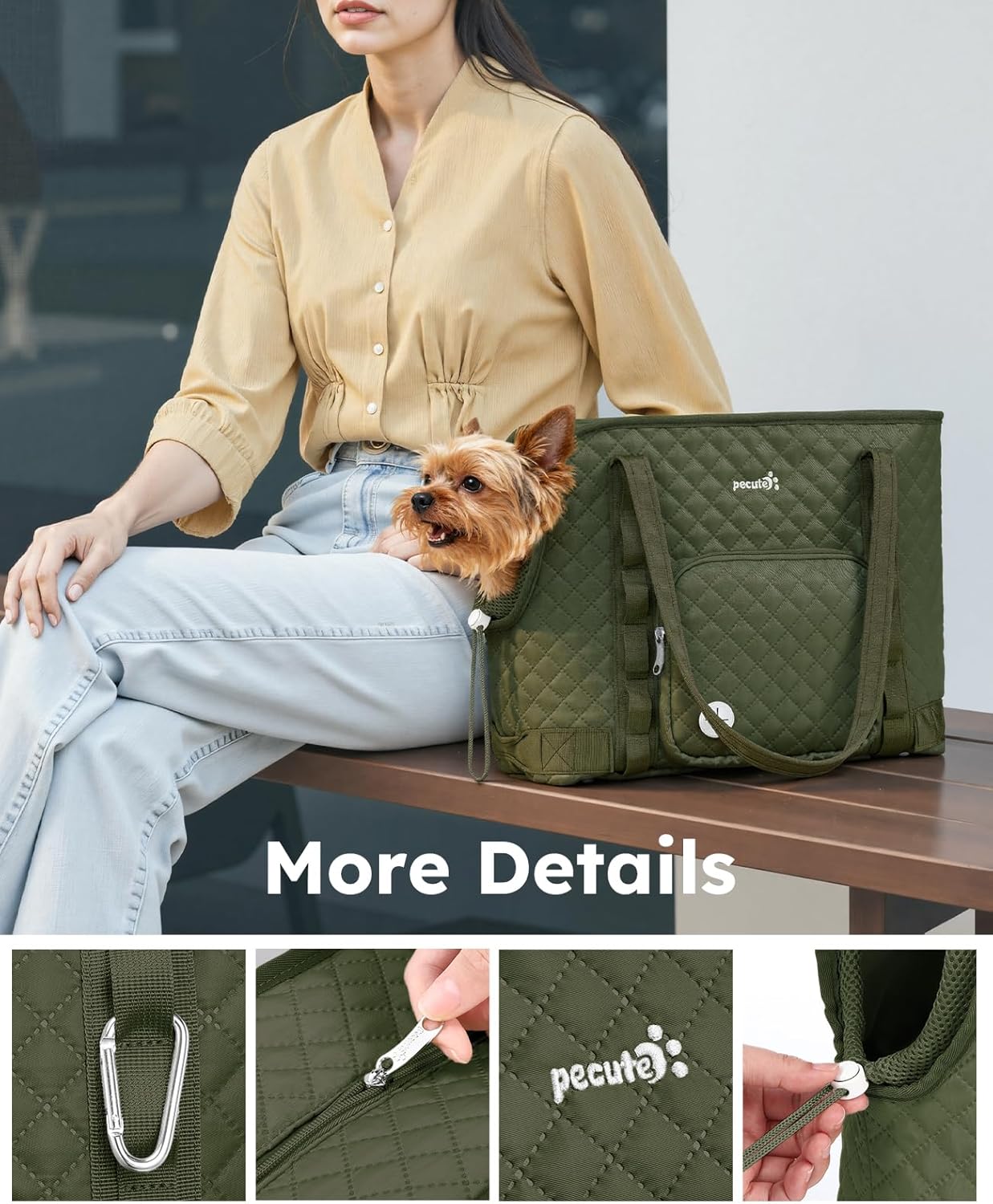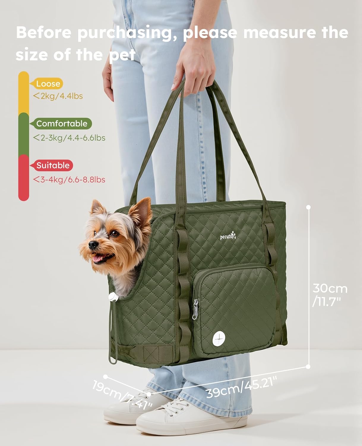 Чанта за кучета pecute за малки кучета 4 кг, Чанта за носене, Чанта за носене на кучета, Лека, Сгъваема кутия за транспортиране на кучета, Чанта за транспортиране на котки за из път (Тъмно зелена)