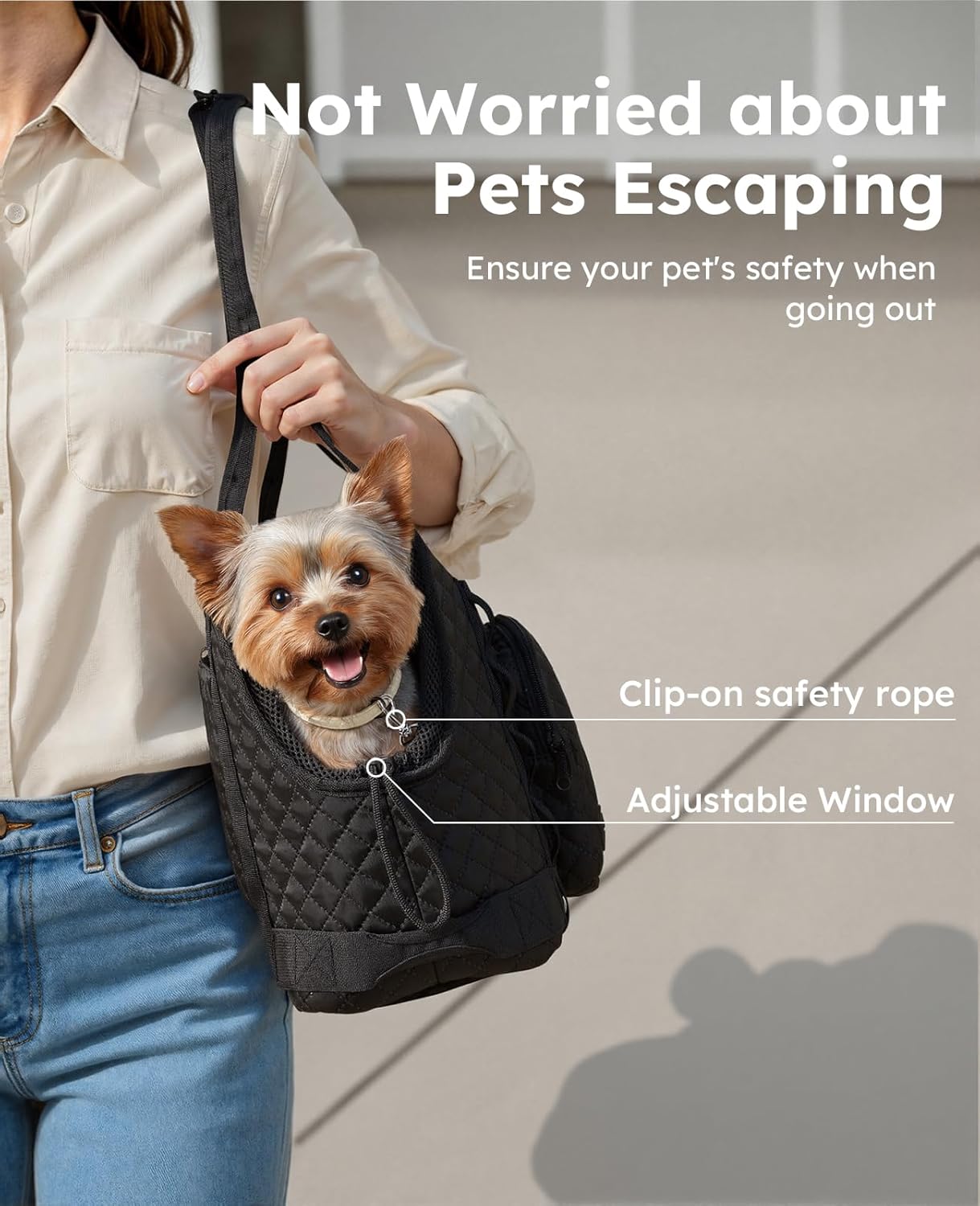 • Дизайн с двоен вход: чантата за малки кучета предлага практичен дизайн с двоен вход с преден и заден отвор, за да отговори на нуждите на вашия домашен любимец. Дизайнът с горен цип създава защитена среда, когато сте в движение. Независимо дали вашият домашен любимец иска да се наслади на гледката или да се настани удобно, двата входа позволяват лесен достъп и добра вентилация, карайки го да се чувства сигурен и комфортно.