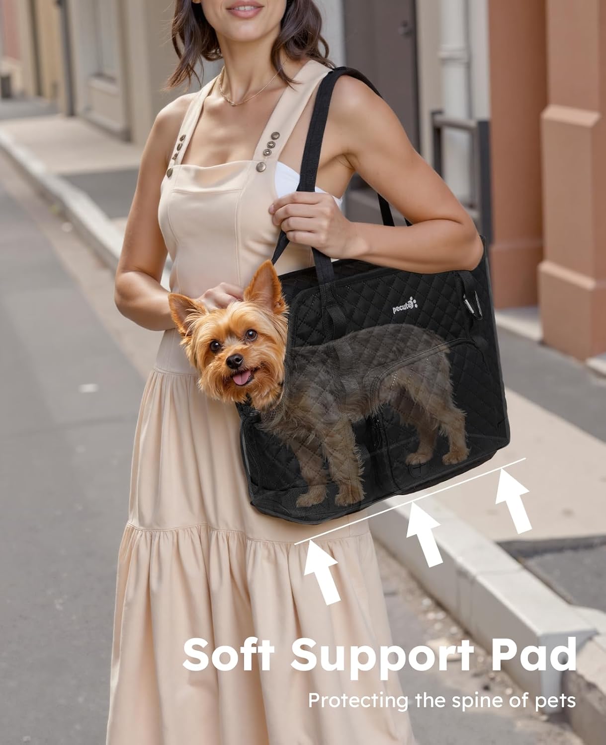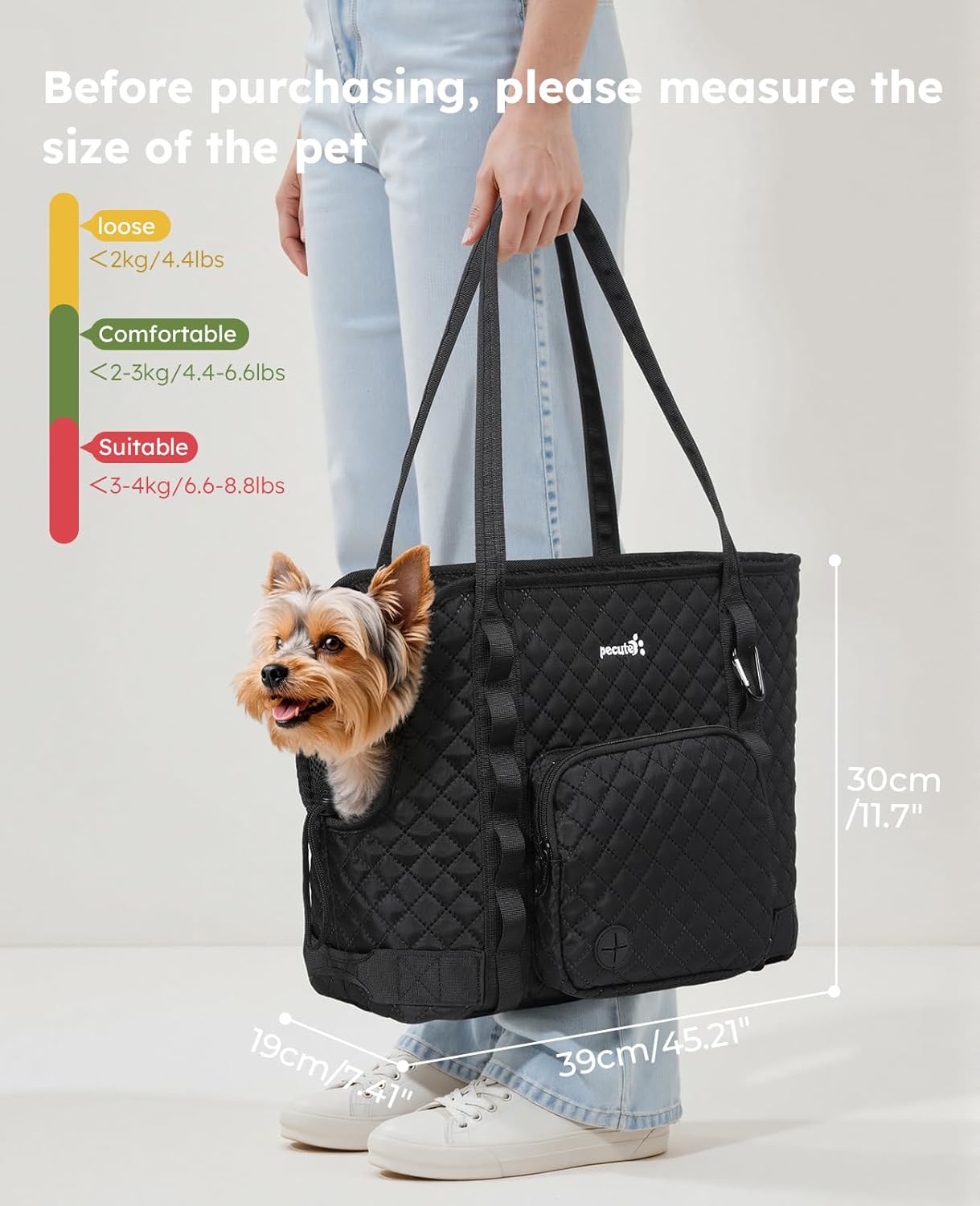 Чанта за кучета pecute за малки кучета 4 кг, Чанта за носене, лека сгъваема кутия за транспортиране на кучета и чанта за транспортиране на котки за из път, черна