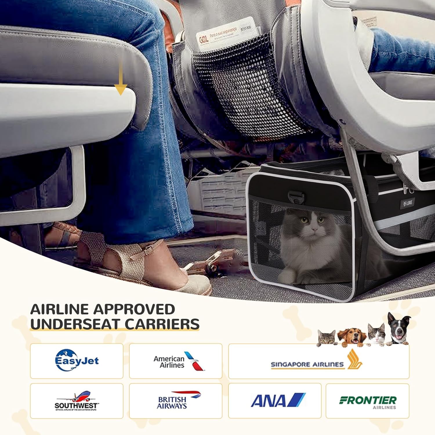 Чанта за кучета, транспортна чанта за кучета и котки в самолет, разширяема чанта за котки до 6 кг, кутия за транспортиране на домашни любимци в кола, самолет или влак, M, черна