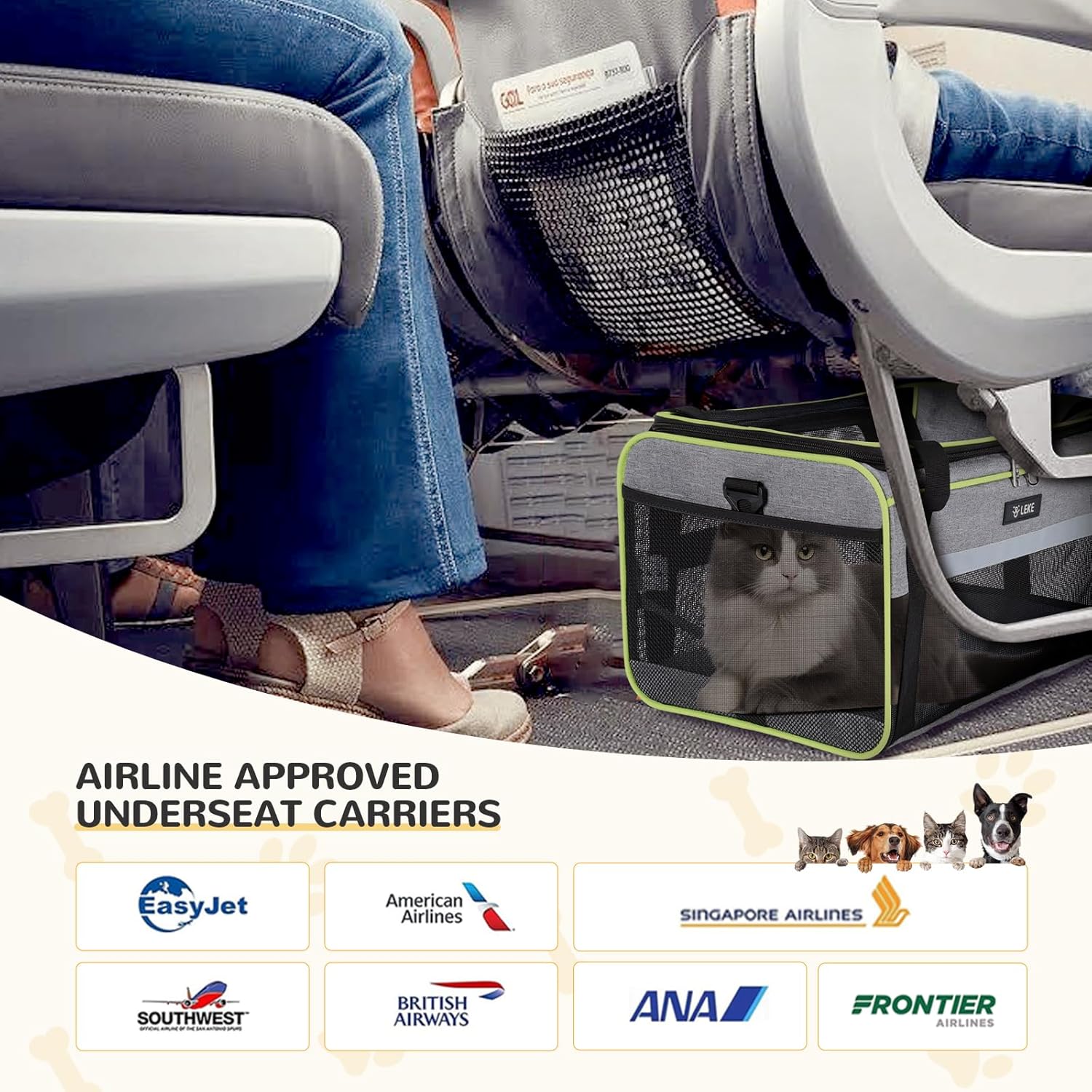 Чанта за кучета, транспортна чанта за кучета и котки в самолет, разширяема чанта за котки до 6 кг, кутия за транспортиране на домашни любимци в кола, самолет или влак, M, сива