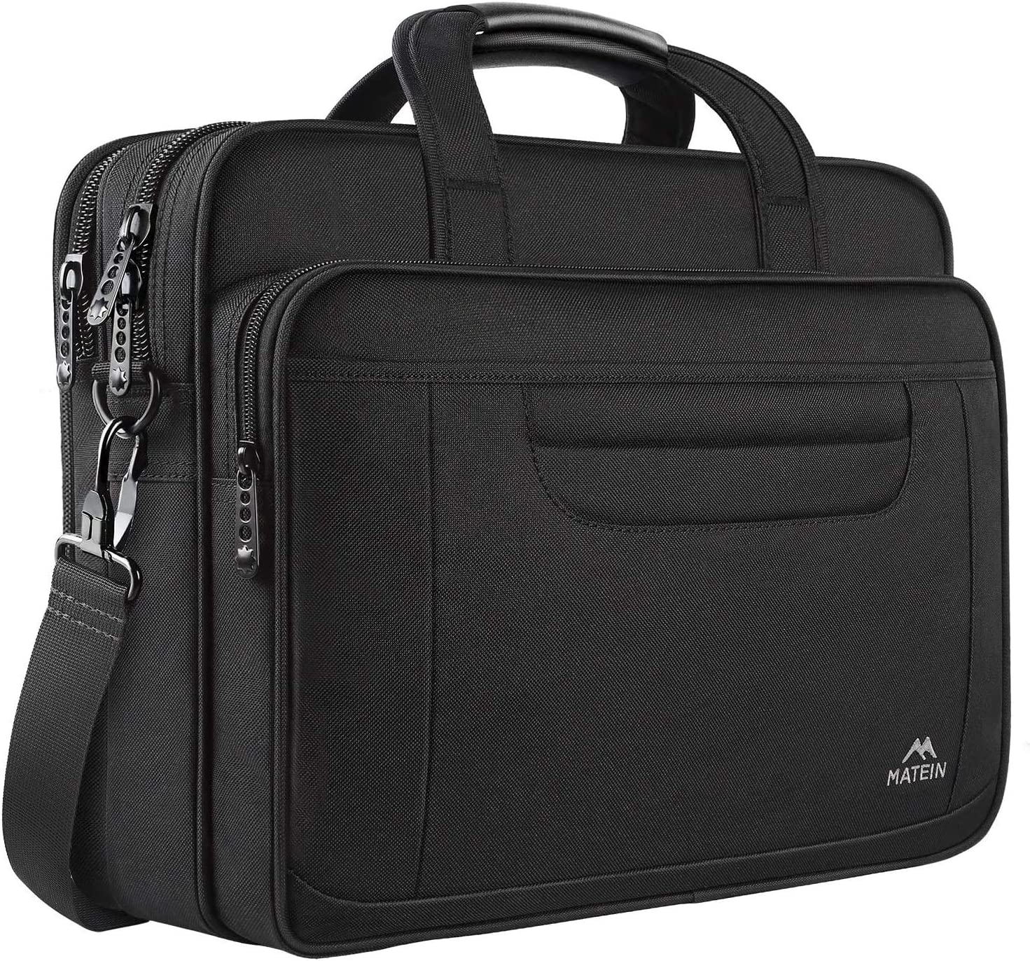 Чанта за лаптоп MATEIN, 15.6", Водоустойчива, Многофункционална бизнес чанта за през рамо, Черна