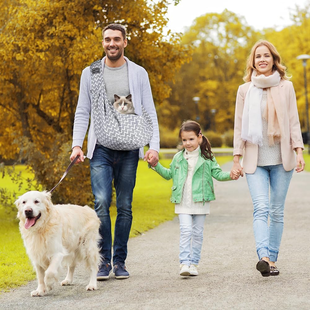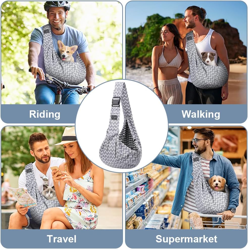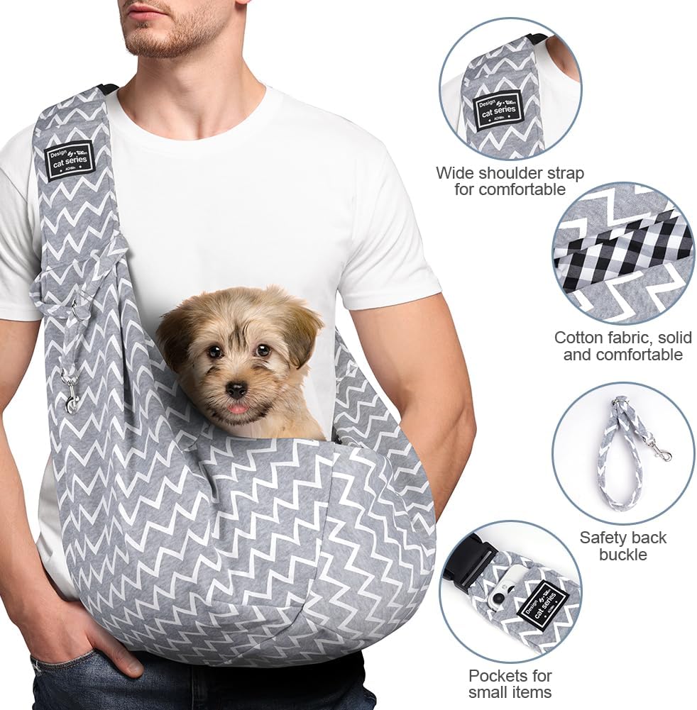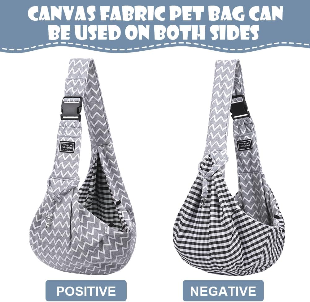 Чанта за носене на кучета, двустранна, за кучета и други домашни любимци до 7,5 кг, регулируема презрамка за носене за малки кучета, за разходки на открито, вълнообразна, сива